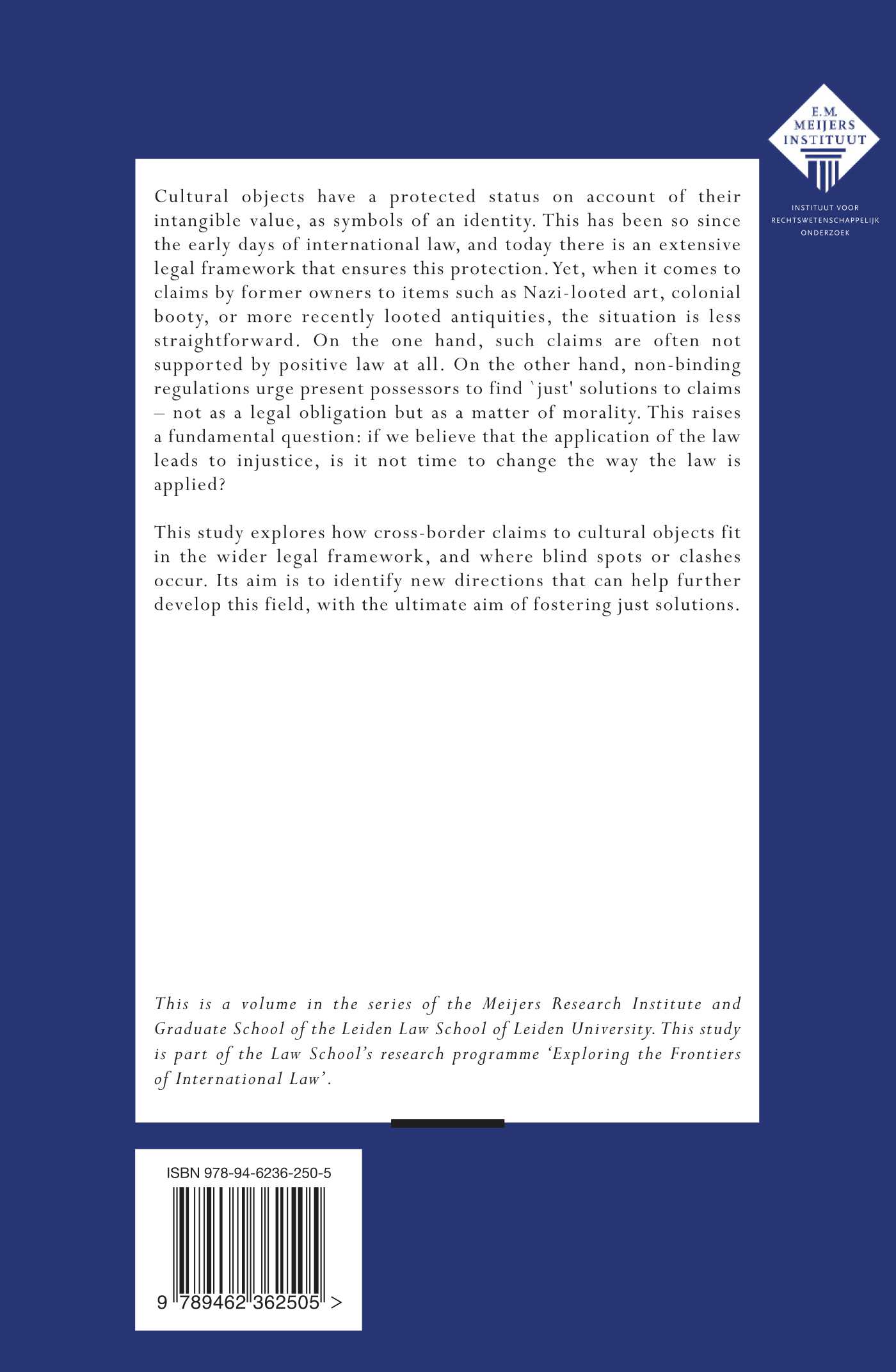 This study explores how cross-border claims to cultural objects fit in the wider legal framework, and where blind spots or clashes occur. It consists of seven chapters, five of which each dealing with different categories of claims that were published in international (cultural heritage) law journals. The overall aim of this dissertation is to identify new directions that can help further develop this field, with the ultimate aim of fostering just solutions.