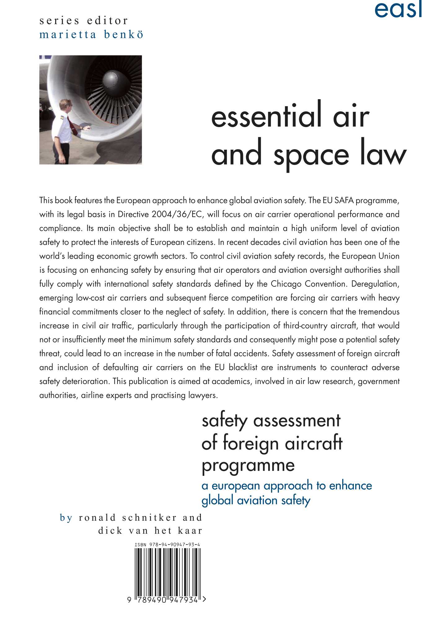 This book features the European approach to enhance global aviation safety. The EU SAFA programme, with its legal basis in Directive 2004/36/EC, will focus on air carrier operational performance and compliance. Its main objective shall be to establish and maintain a high uniform level of aviation safety to protect the interests of European citizens. In recent decades civil aviation has been one of the world’s leading economic growth sectors. To control civil aviation safety records, the European Union is focusing on enhancing safety by ensuring that air operators and aviation oversight authorities shall fully comply with international safety standards defined by the Chicago Convention. Deregulation, emerging low-cost air carriers and subsequent fierce competition are forcing air carriers with heavy financial commitments closer to the neglect of safety. In addition, there is concern that the tremendous increase in civil air traffic, particularly through the participation of third-country aircraft, that would not or insufficiently meet the minimum safety standards and consequently might pose a potential safety threat, could lead to an increase in the number of fatal accidents. Safety assessment of foreign aircraft and inclusion of defaulting air carriers on the EU blacklist are instruments to counteract adverse safety deterioration. This publication is aimed at academics, involved in air law research, government authorities, airline experts and practising lawyers.