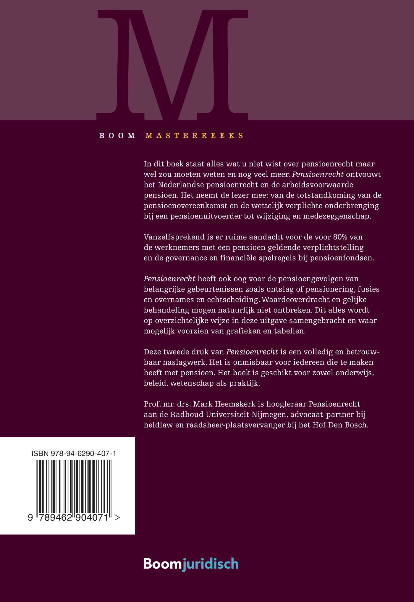 In dit boek staat alles wat u niet wist over pensioenrecht maar wel zou moeten weten en nog veel meer. Pensioenrecht ontvouwt het Nederlandse pensioenrecht en de arbeidsvoorwaarde pensioen. Het neemt de lezer mee: van de totstandkoming van de pensioenovereenkomst en de wettelijk verplichte onderbrenging bij een pensioenuitvoerder tot wijziging en medezeggenschap.