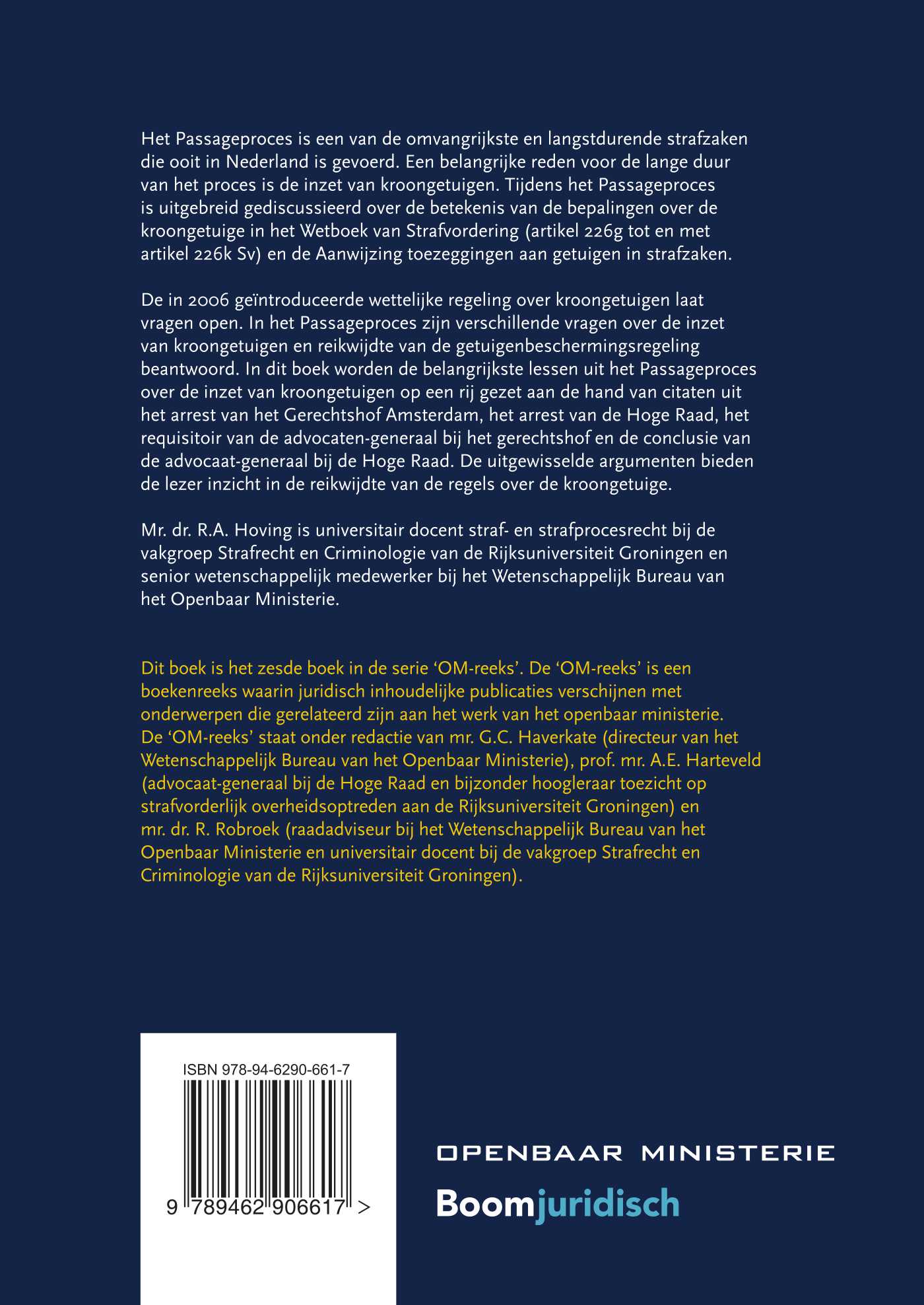 De in 2006 geïntroduceerde wettelijke regeling over kroongetuigen laat vragen open. In het Passageproces zijn verschillende vragen over de inzet van kroongetuigen en reikwijdte van de getuigenbeschermingsregeling beantwoord. In dit boek worden de belangrijkste lessen uit het Passageproces over de inzet van kroongetuigen op een rij gezet aan de hand van citaten uit het arrest van het Gerechtshof Amsterdam, het arrest van de Hoge Raad, het requisitoir van de advocaten-generaal bij het gerechtshof en de conclusie van de advocaat-generaal bij de Hoge Raad. De uitgewisselde argumenten bieden de lezer inzicht in de reikwijdte van de regels over de kroongetuige.