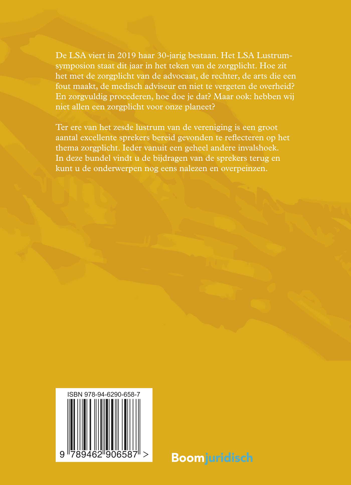 De LSA viert in 2019 haar 30-jarig bestaan. Het LSA Lustrumsymposion staat dit jaar in het teken van de zorgplicht. Hoe zit het met de zorgplicht van de advocaat, de rechter, de arts die een fout maakt, de medisch adviseur en niet te vergeten de overheid? En zorgvuldig procederen, hoe doe je dat? Maar ook: hebben wij niet allen een zorgplicht voor onze planeet?