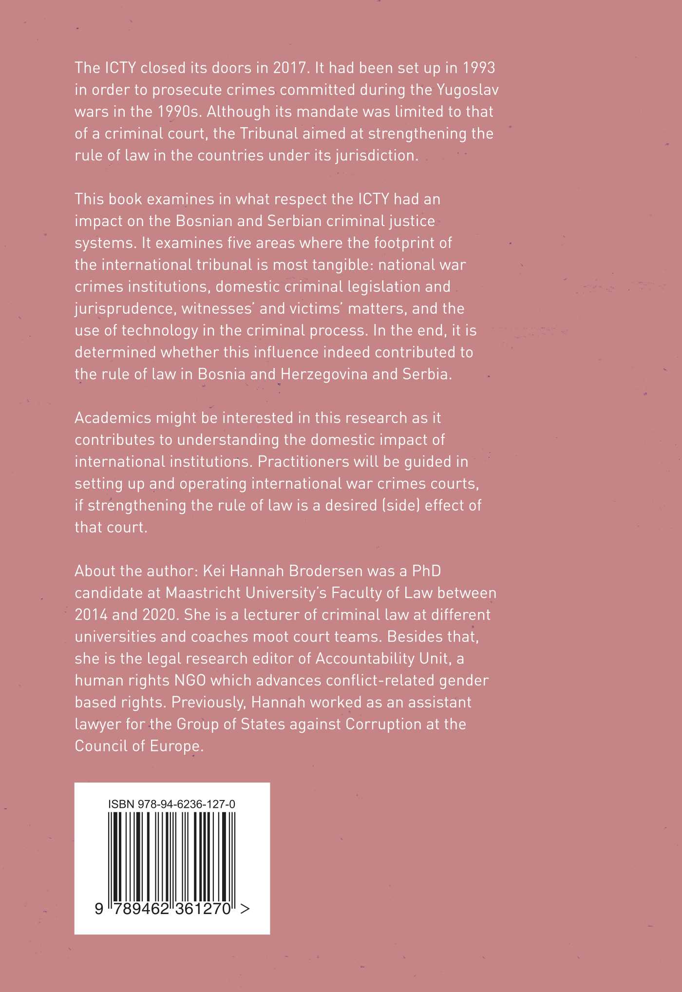 This book examines in what respect the ICTY had an impact on the Bosnian and Serbian criminal justice systems. It examines five areas where the footprint of the international tribunal is most tangible: national war crimes institutions, domestic criminal legislation and jurisprudence, witnesses’ and victims’ matters, and the use of technology in the criminal process. In the end, it is determined whether this influence indeed contributed to the rule of law in Bosnia and Herzegovina and Serbia.