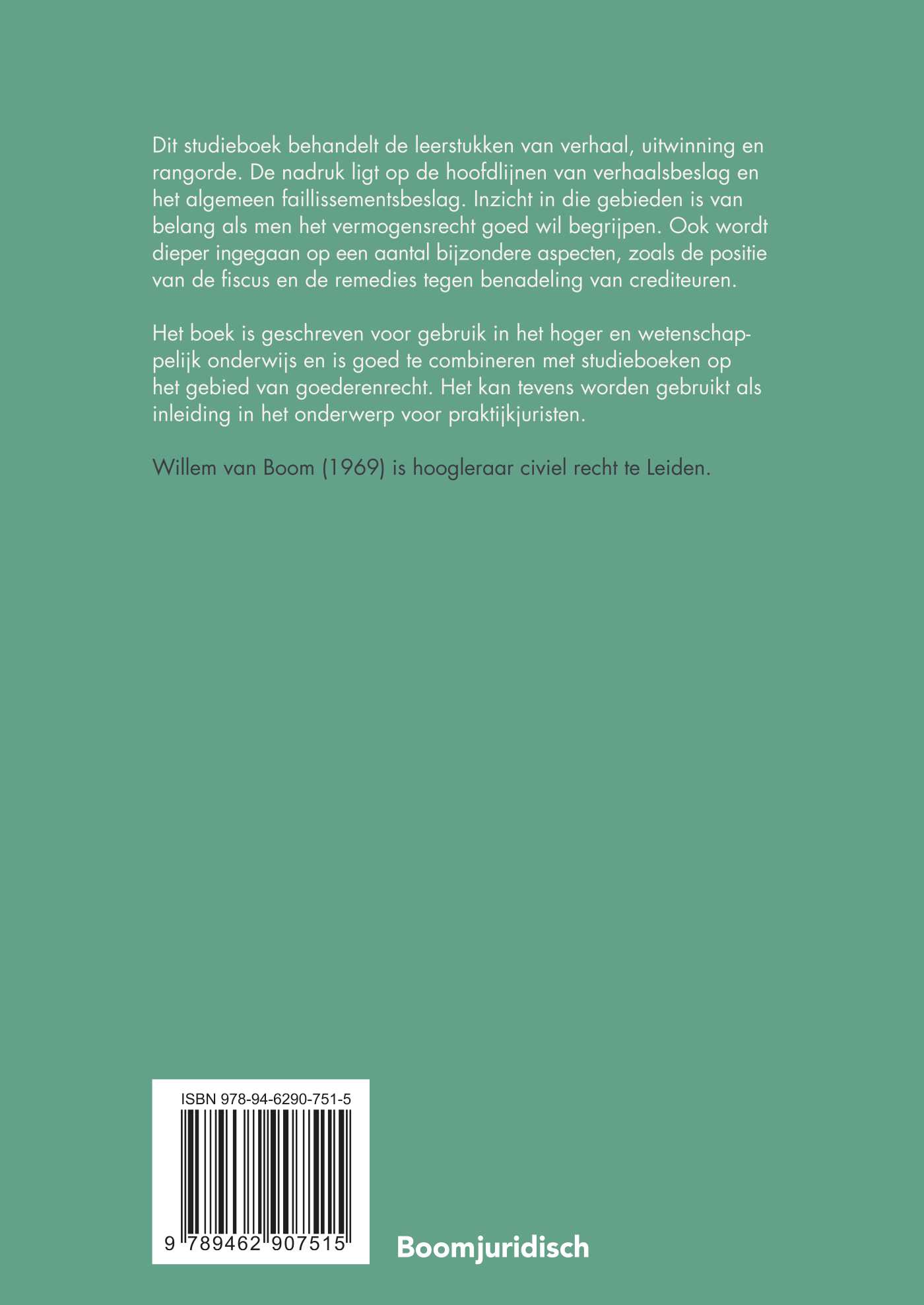 Dit studieboek behandelt de leerstukken van verhaal, uitwinning en rangorde. De nadruk ligt op de hoofdlijnen van verhaalsbeslag en het algemeen faillissementsbeslag. Inzicht in die gebieden is van belang als men het vermogensrecht goed wil begrijpen. Ook wordt dieper ingegaan op een aantal bijzondere aspecten, zoals de positie