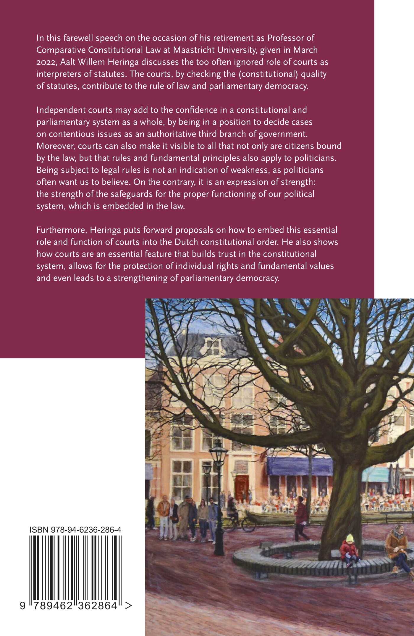 Furthermore, Heringa puts forward proposals on how to embed this essential role and function of courts into the Dutch constitutional order. He also shows how courts are an essential feature that builds trust in the constitutional system, allows for the protection of individual rights and fundamental values and even leads to a strengthening of parliamentary democracy.