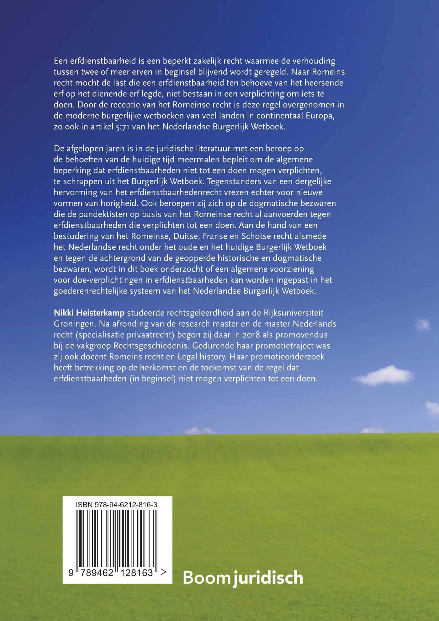 De afgelopen jaren is in de juridische literatuur met een beroep op de behoeften van de huidige tijd meermalen bepleit om de algemene beperking dat erfdienstbaarheden niet tot een doen mogen verplichten, te schrappen uit het Burgerlijk Wetboek. Tegenstanders van een dergelijke hervorming van het erfdienstbaarhedenrecht vrezen echter voor nieuwe vormen van horigheid. Ook beroepen zij zich op de dogmatische bezwaren die de pandektisten op basis van het Romeinse recht al aanvoerden tegen erfdienstbaarheden die verplichten tot een doen. Aan de hand van een bestudering van het Romeinse, Duitse, Franse en Schotse recht alsmede het Nederlandse recht onder het oude en het huidige Burgerlijk Wetboek en tegen de achtergrond van de geopperde historische en dogmatische bezwaren, wordt in dit boek onderzocht of een algemene voorziening voor doe-verplichtingen in erfdienstbaarheden kan worden ingepast in het goederenrechtelijke systeem van het Nederlandse Burgerlijk Wetboek.