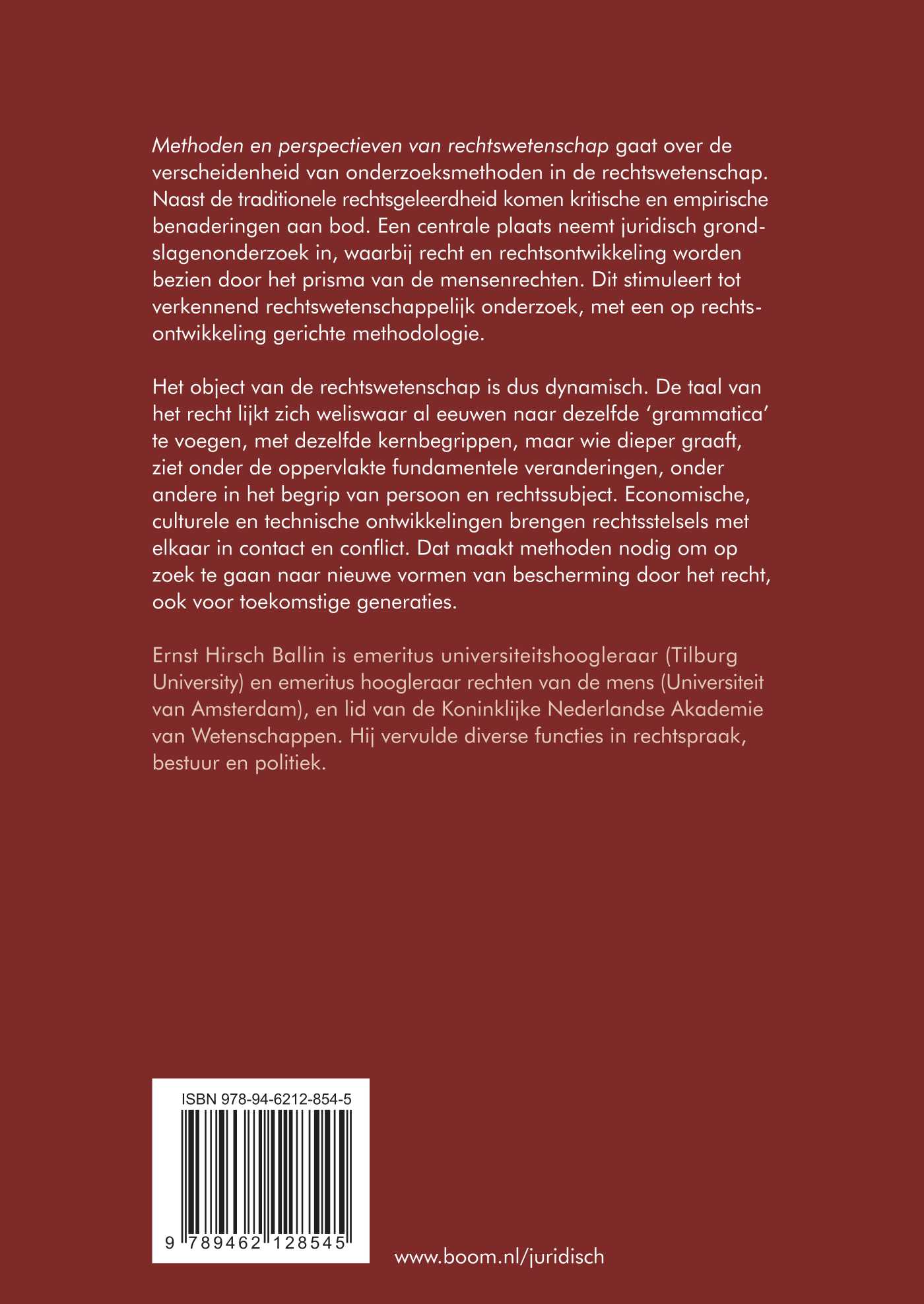 In 2020 verscheen van de hand van Ernst Hirsch Ballin bij Edward Elgar Publishing Advanced Introduction to Legal Research Methods. In 2024 publiceerde Boom deze monografie onder de titel Methoden en perspectieven van rechtswetenschap. Het is meer dan een een-op-een vertaling geworden; een heel aantal van de thema’s die ook in de Engelstalige versie aan de orde kwamen worden verder uitgediept en van nadere voorbeelden voorzien.. > Lees verder!