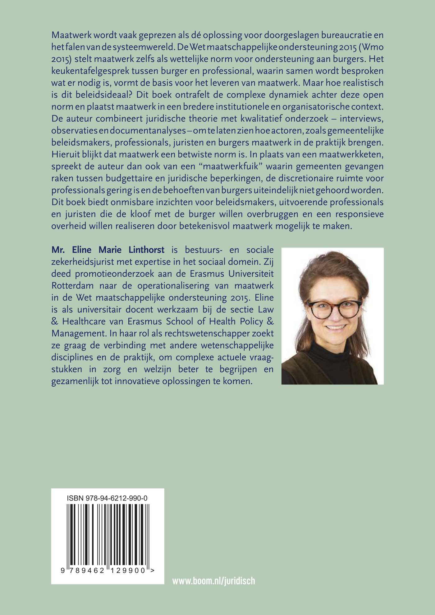 In plaats van een maatwerkketen, spreekt de auteur dan ook van een “maatwerkfuik” waarin gemeenten gevangen raken tussen budgettaire en juridische beperkingen, de discretionaire ruimte voor professionals gering is en de behoeften van burgers uiteindelijk niet gehoord worden. Dit boek biedt onmisbare inzichten voor beleidsmakers, uitvoerende professionals en juristen die de kloof met de burger willen overbruggen en een responsieve overheid willen realiseren door betekenisvol maatwerk mogelijk te maken.
