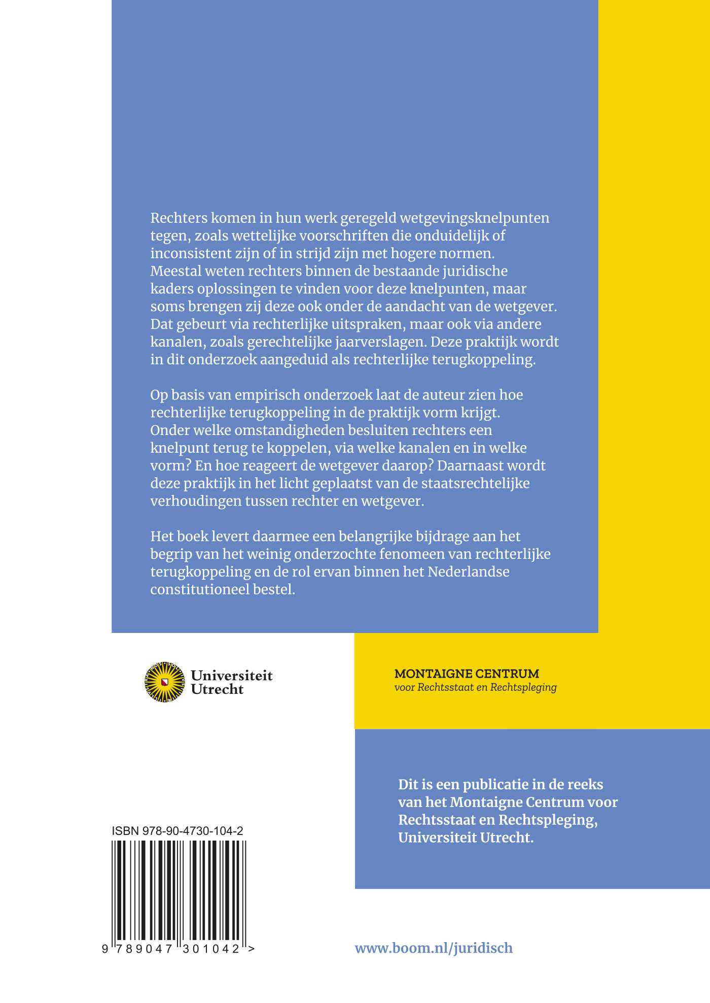 Het boek levert daarmee een belangrijke bijdrage aan het begrip van het weinig onderzochte fenomeen van rechterlijke terugkoppeling en de rol ervan binnen het Nederlandse constitutioneel bestel.
