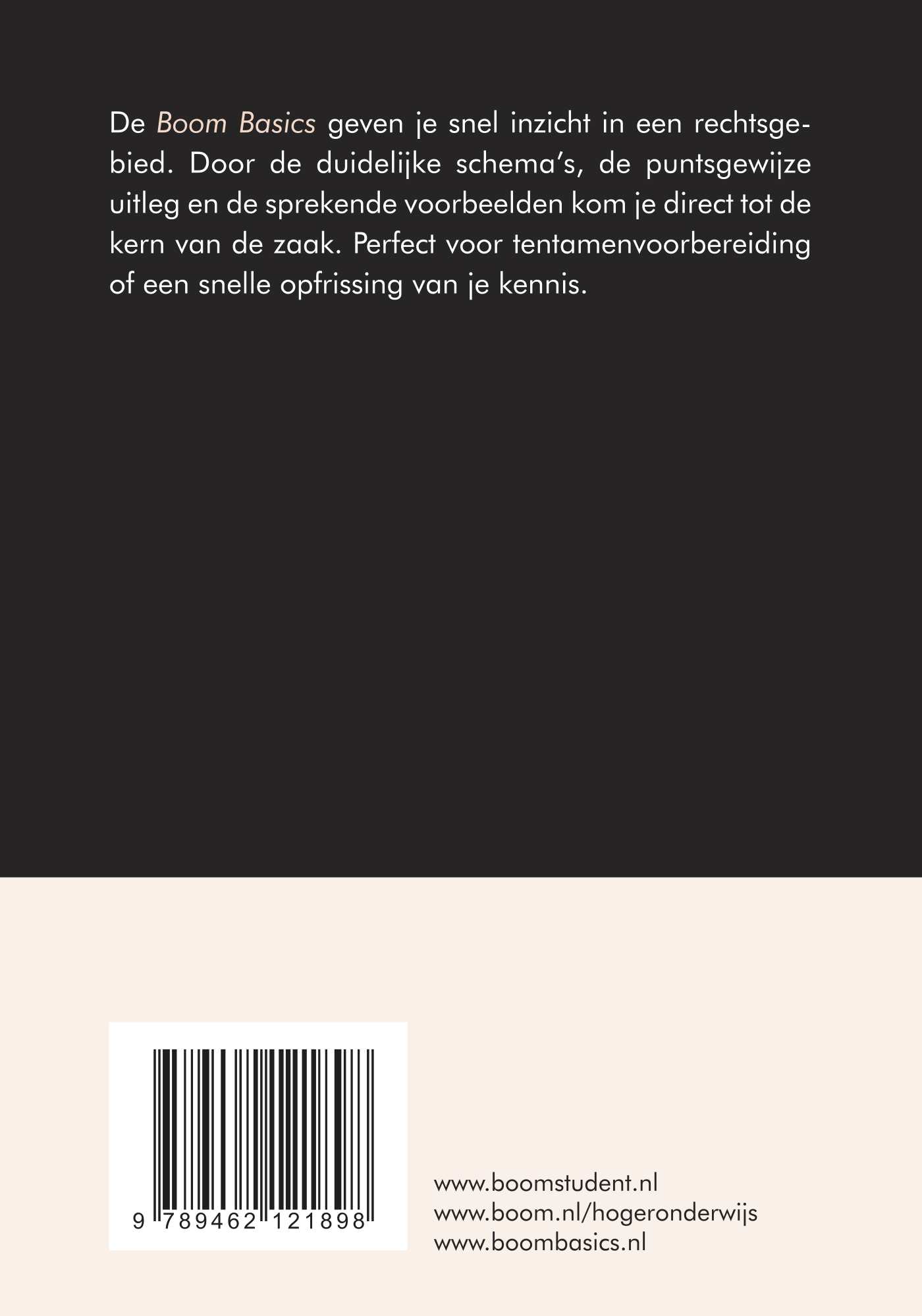 De Boom Basics geven je snel inzicht in een rechtsgebied. Door de duidelijke schema’s, de puntsgewijze uitleg en de sprekende voorbeelden kom je direct tot de kern van de zaak. Perfect voor tentamenvoorbereiding of een snelle opfrissing van je kennis.