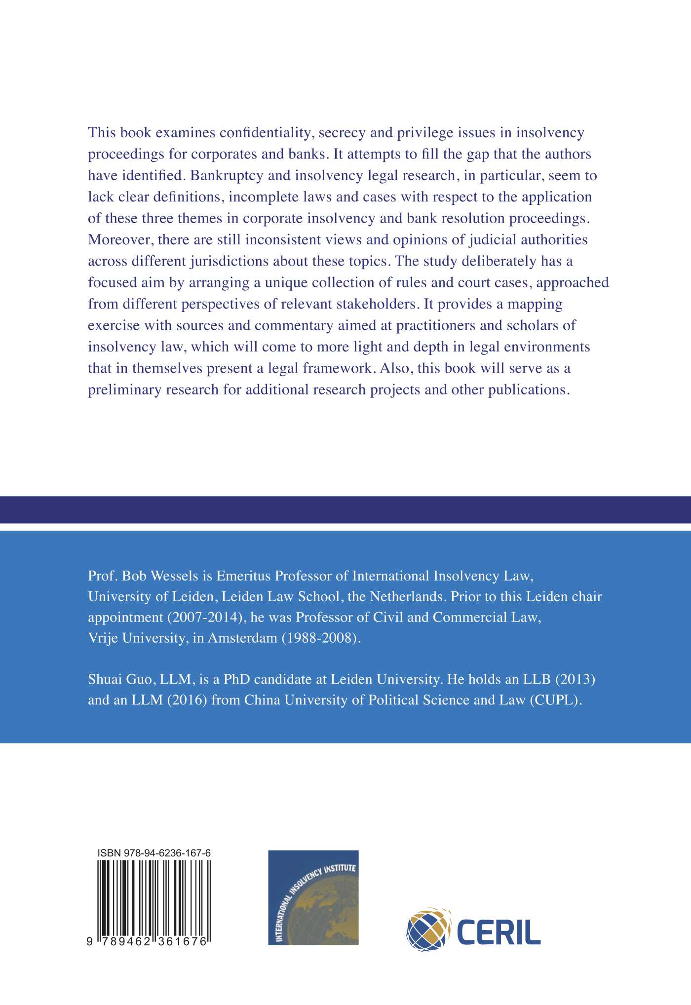 This book examines confidentiality, secrecy and privilege issues in insolvency proceedings for corporates and banks. It attempts to fill the gap that the authors have identified. Bankruptcy and insolvency legal research, in particular, seem to lack clear definitions, incomplete laws and cases with respect to the application of these three themes in corporate insolvency and bank resolution proceedings. Moreover, there are still inconsistent views and opinions of judicial authorities across different jurisdictions about these topics. The study deliberately has a focused aim by arranging a unique collection of rules and court cases, approached from different perspectives of relevant stakeholders. It provides a mapping exercise with sources and commentary aimed at practitioners and scholars of insolvency law, which will come to more light and depth in legal environments that in themselves present a legal framework. Also, this book will serve as a preliminary research for additional research projects and other publications.