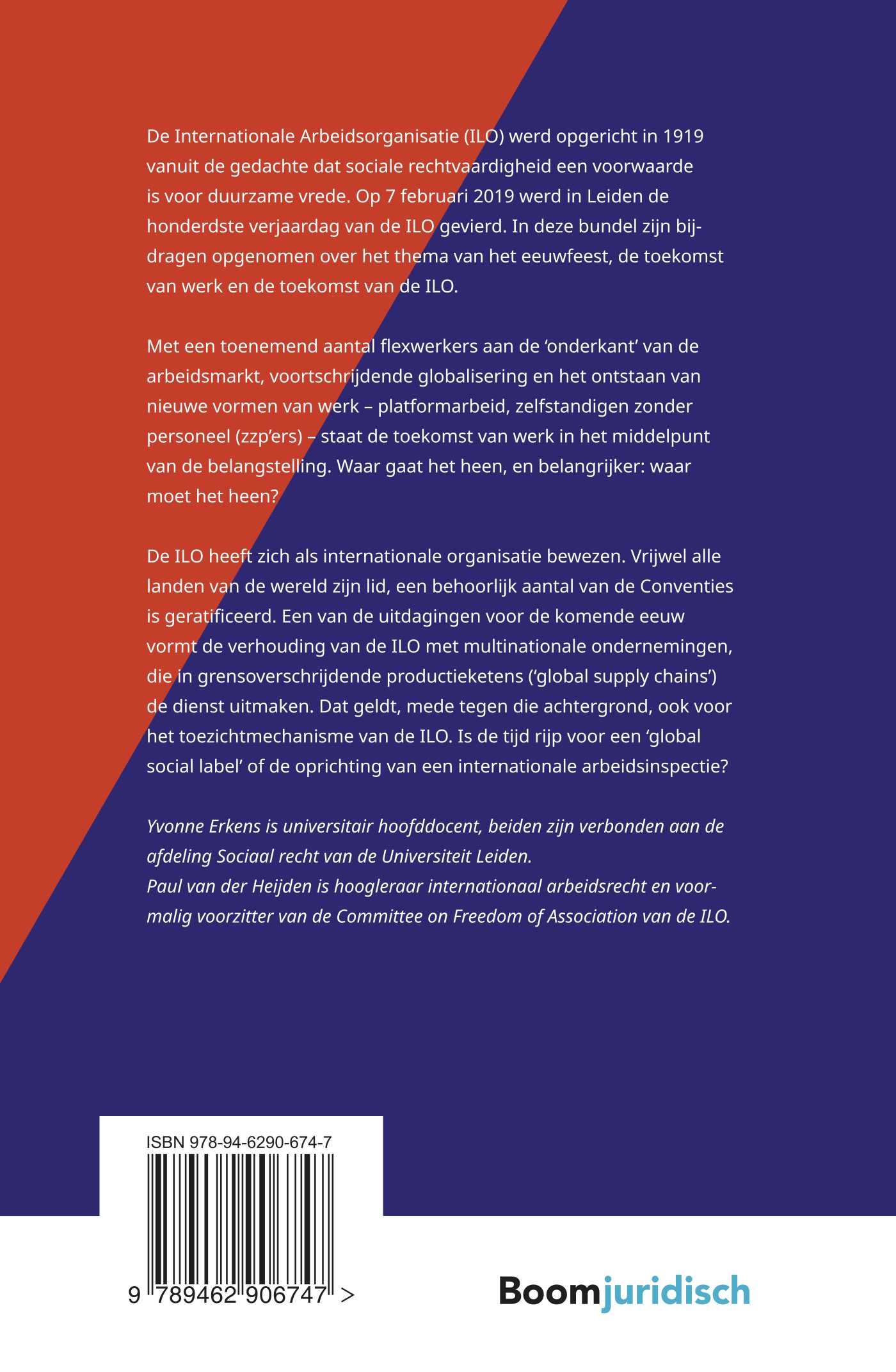 De Internationale Arbeidsorganisatie (ILO) werd opgericht in 1919 vanuit de gedachte dat sociale rechtvaardigheid een voorwaarde is voor duurzame vrede. Op 7 februari 2019 werd in Leiden de honderdste verjaardag van de ILO gevierd. In deze bundel zijn bijdragen opgenomen over het thema van het eeuwfeest, de toekomst van werk en de toekomst van de ILO.