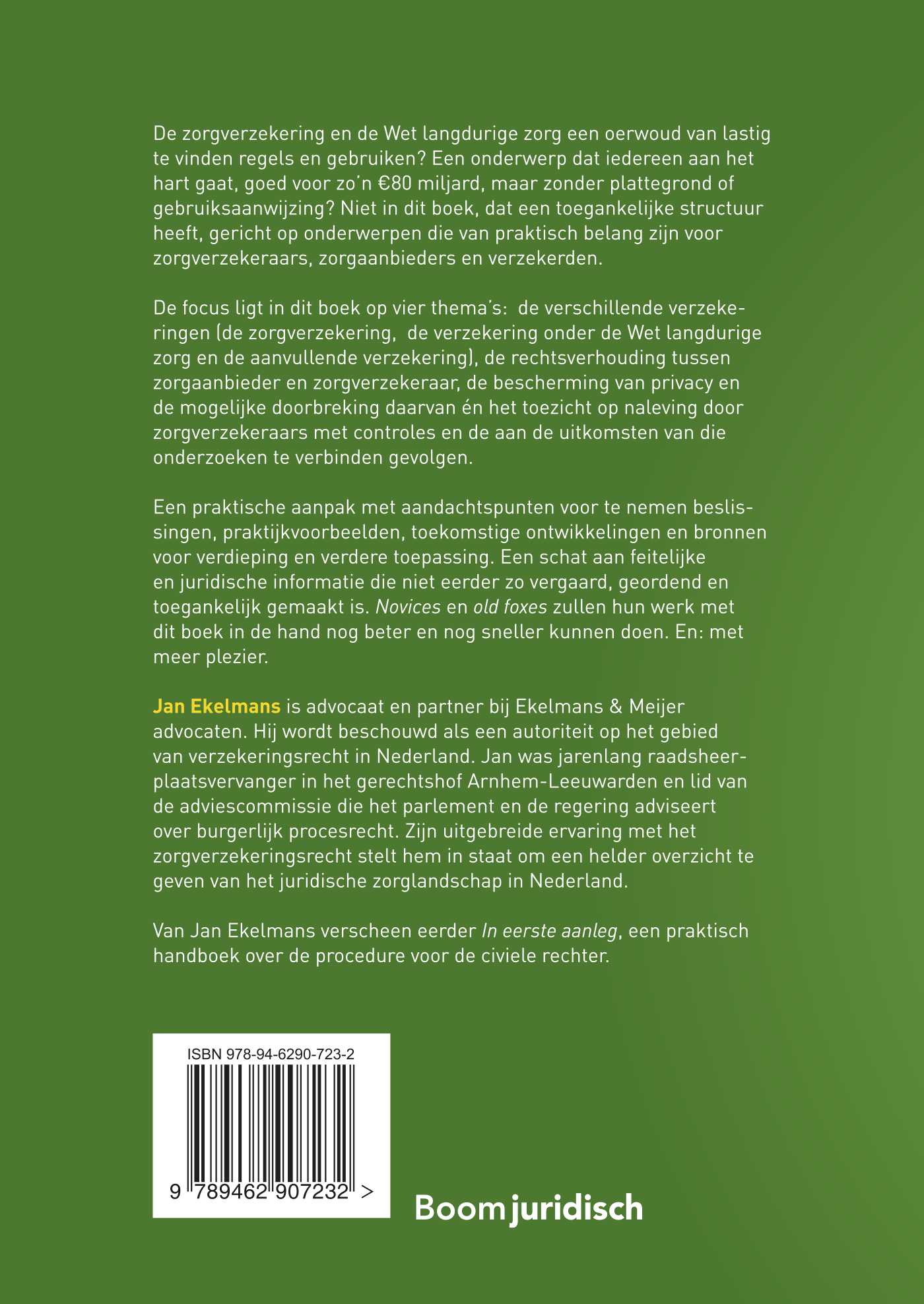 De zorgverzekering en de Wet langdurige zorg een oerwoud van lastig te vinden regels en gebruiken? Een onderwerp dat iedereen aan het hart gaat, goed voor zo’n €80 miljard, maar zonder plattegrond of gebruiksaanwijzing? Niet in dit boek, dat een toegankelijke structuur heeft, gericht op onderwerpen die van praktisch belang zijn voor zorgverzekeraars, zorgaanbieders en verzekerden.