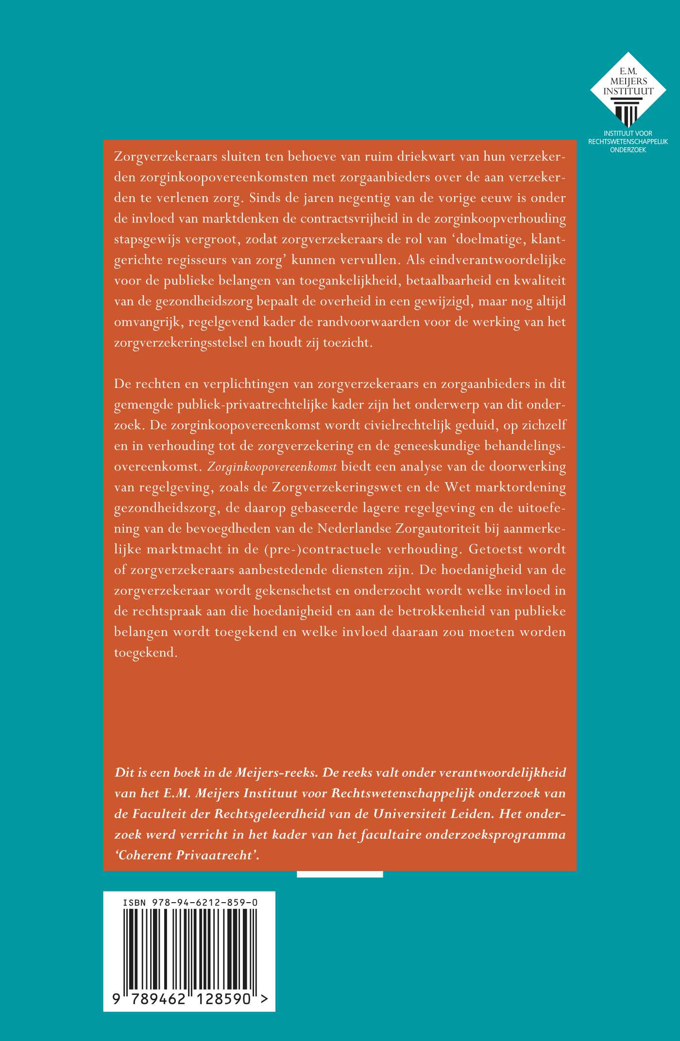 De rechten en verplichtingen van zorgverzekeraars en zorgaanbieders in dit gemengde publiek-privaatrechtelijke kader zijn het onderwerp van dit onderzoek. De zorginkoopovereenkomst wordt civielrechtelijk geduid, op zichzelf en in verhouding tot de zorgverzekering en de geneeskundige behandelingsovereenkomst. Zorginkoopovereenkomst biedt een analyse van de doorwerking van regelgeving, zoals de Zorgverzekeringswet en de Wet marktordening gezondheidszorg, de daarop gebaseerde lagere regelgeving en de uitoefening van de bevoegdheden van de Nederlandse Zorgautoriteit bij aanmerkelijke marktmacht in de (pre-)contractuele verhouding. Getoetst wordt of zorgverzekeraars aanbestedende diensten zijn. De hoedanigheid van de zorgverzekeraar wordt gekenschetst en onderzocht wordt welke invloed in de rechtspraak aan die hoedanigheid en aan de betrokkenheid van publieke belangen wordt toegekend en welke invloed daaraan zou moeten worden toegekend.