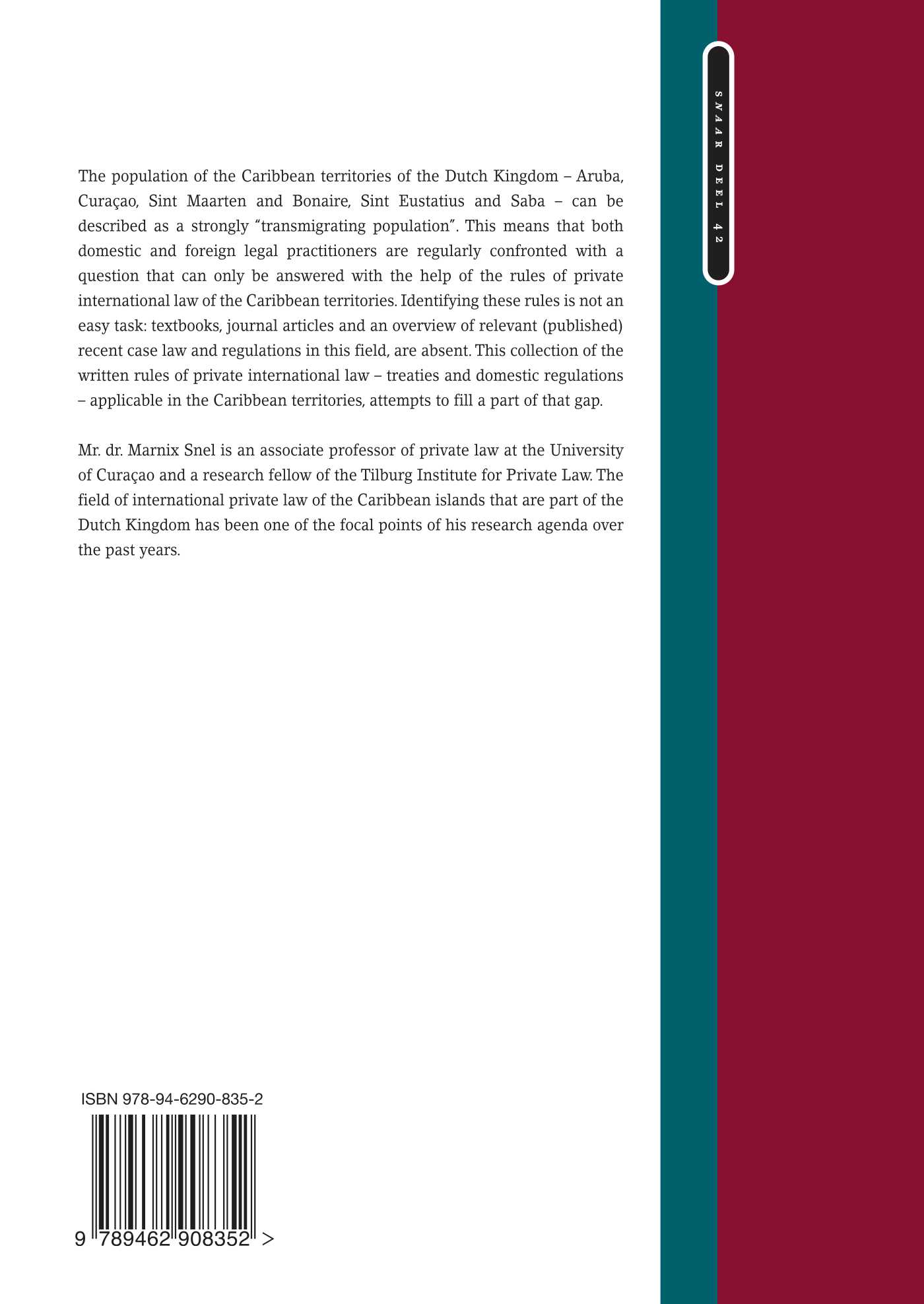 The population of the Caribbean territories of the Dutch Kingdom – Aruba, Curaçao, Sint Maarten and Bonaire, Sint Eustatius and Saba – can be described as a strongly “transmigrating population”. This means that both domestic and foreign legal practitioners are regularly confronted with a question that can only be answered with the help of the rules of private international law of the Caribbean territories. Identifying these rules is not an easy task: textbooks, journal articles and an overview of relevant (published) recent case law and regulations in this field, are absent. This collection of the written rules of private international law – treaties and domestic regulations – applicable in the Caribbean territories, attempts to fill a part of that gap.