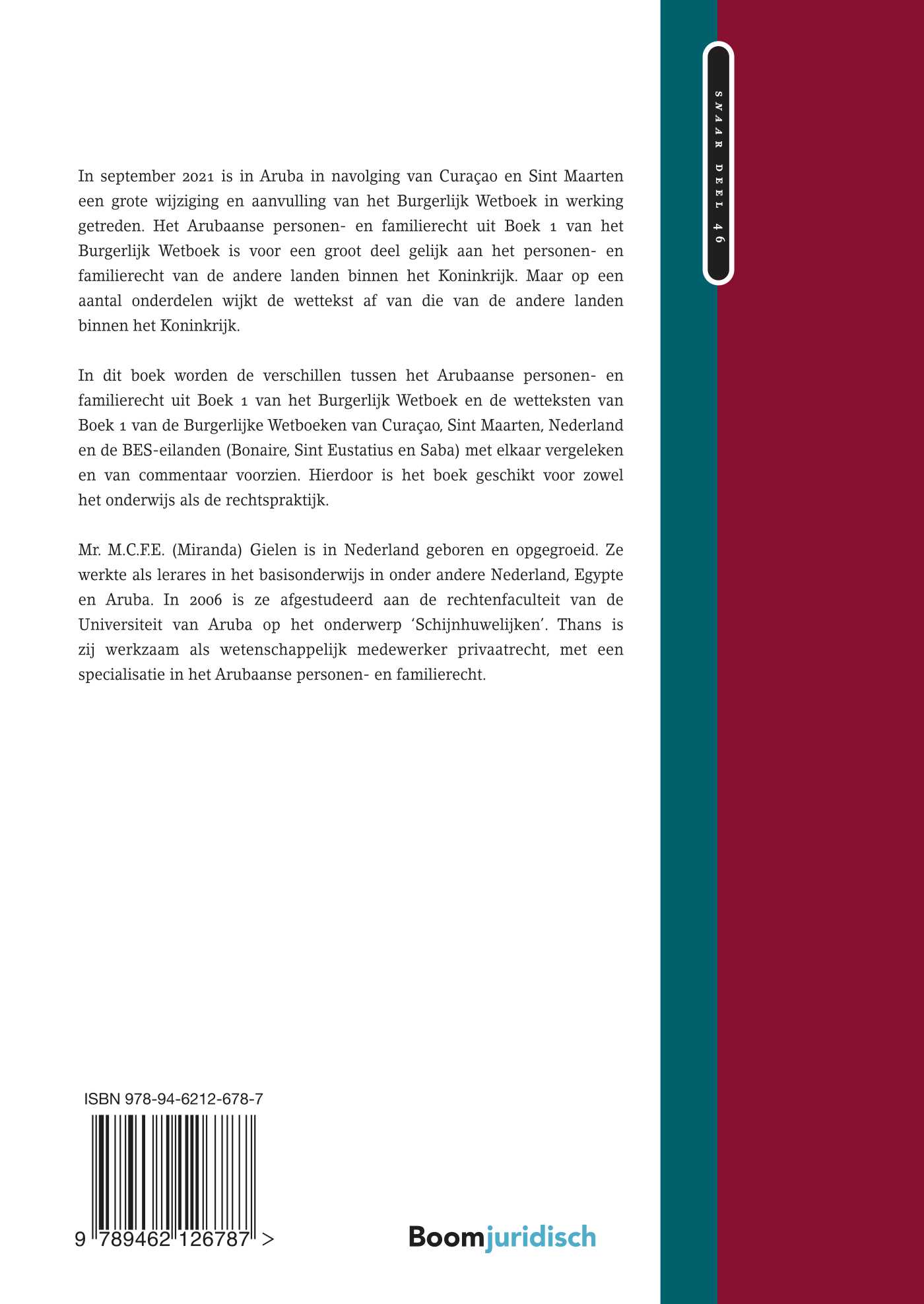 In dit boek worden de verschillen tussen het Arubaanse personen- en familierecht uit boek 1 van het Burgerlijk Wetboek en de wetteksten van Boek 1 van de Burgerlijke Wetboeken van Curaçao, Sint Maarten, Nederland en de BES-eilanden (Bonaire, Sint Eustatius en Saba) met elkaar vergeleken en van commentaar voorzien. Hierdoor is het boek geschikt voor zowel het onderwijs als de rechtspraktijk.