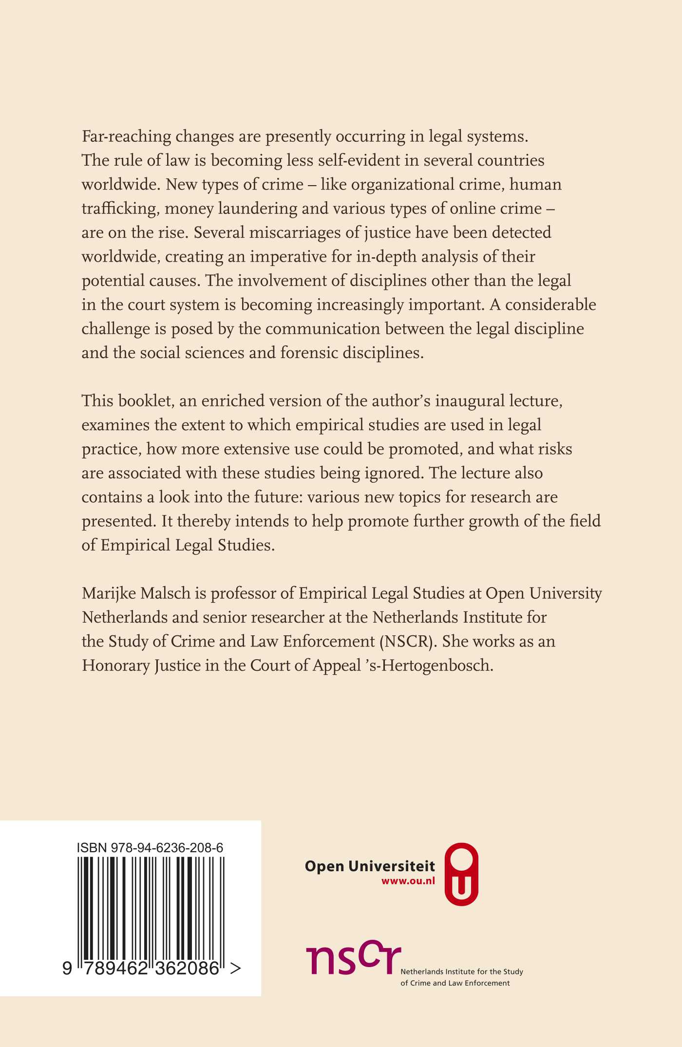 This booklet, an enriched version of the author’s inaugural lecture, examines the extent to which empirical studies are used in legal practice, how more extensive use could be promoted, and what risks are associated with these studies being ignored. The lecture also contains a look into the future: various new topics for research are presented. It thereby intends to help to promote further growth of the field of Empirical Legal Studies.