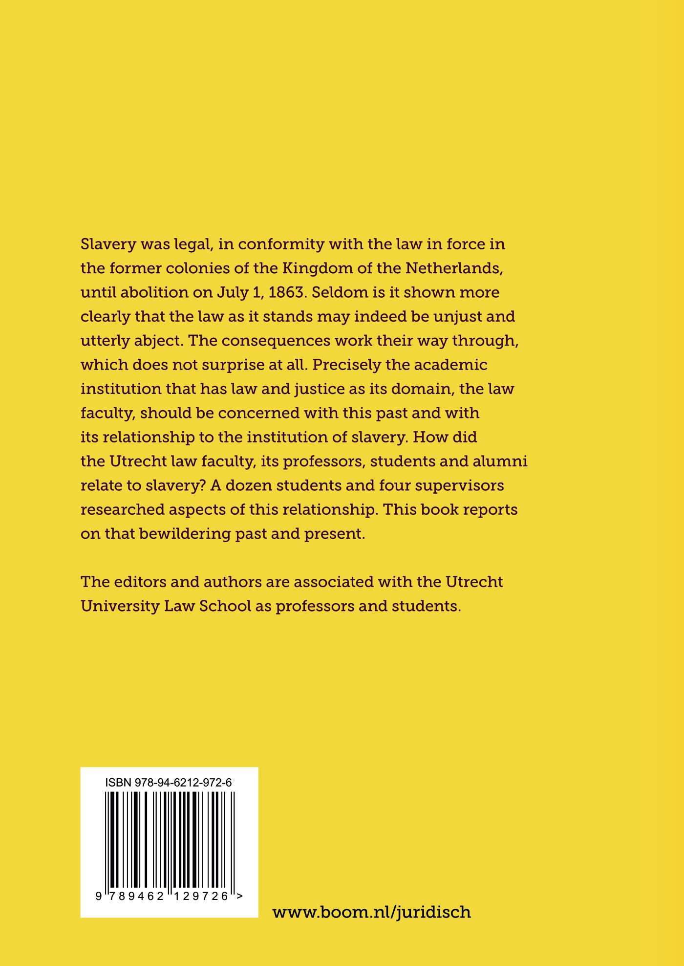 Slavery was legal, in conformity with the law in force in the former colonies of the Kingdom of the Netherlands, until abolition on July 1, 1863. Seldom is it shown more clearly that the law as it stands may indeed be unjust and utterly abject. The consequences work their way through, which does not surprise at all. Precisely the academic institution that has law and justice as its domain, the law faculty, should be concerned with this past and with its relationship to the institution of slavery. How did the Utrecht law faculty, its professors, students and alumni relate to slavery? A dozen students and four supervisors researched aspects of this relationship. This book reports on that bewildering past and present.