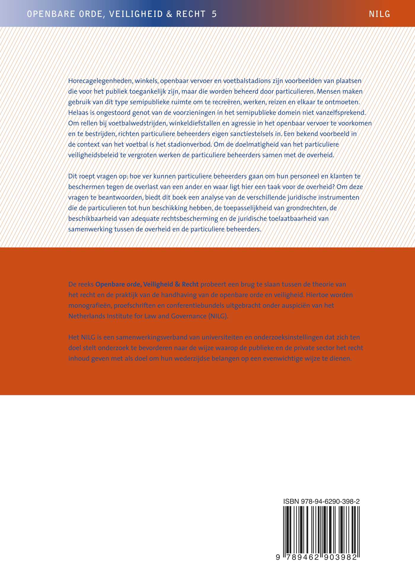 Dit roept vragen op: hoe ver kunnen particuliere beheerders gaan om hun personeel en klanten te beschermen tegen de overlast van een ander en waar ligt hier een taak voor de overheid? Om deze vraag te beantwoorden, bevat dit boek een analyse van de verschillende juridische instrumenten die de particulieren tot hun beschikking hebben, de toepasselijkheid van grondrechten, de beschikbaarheid van adequate rechtsbescherming en de juridische toelaatbaarheid van samenwerking tussen de overheid en de particuliere beheerders.