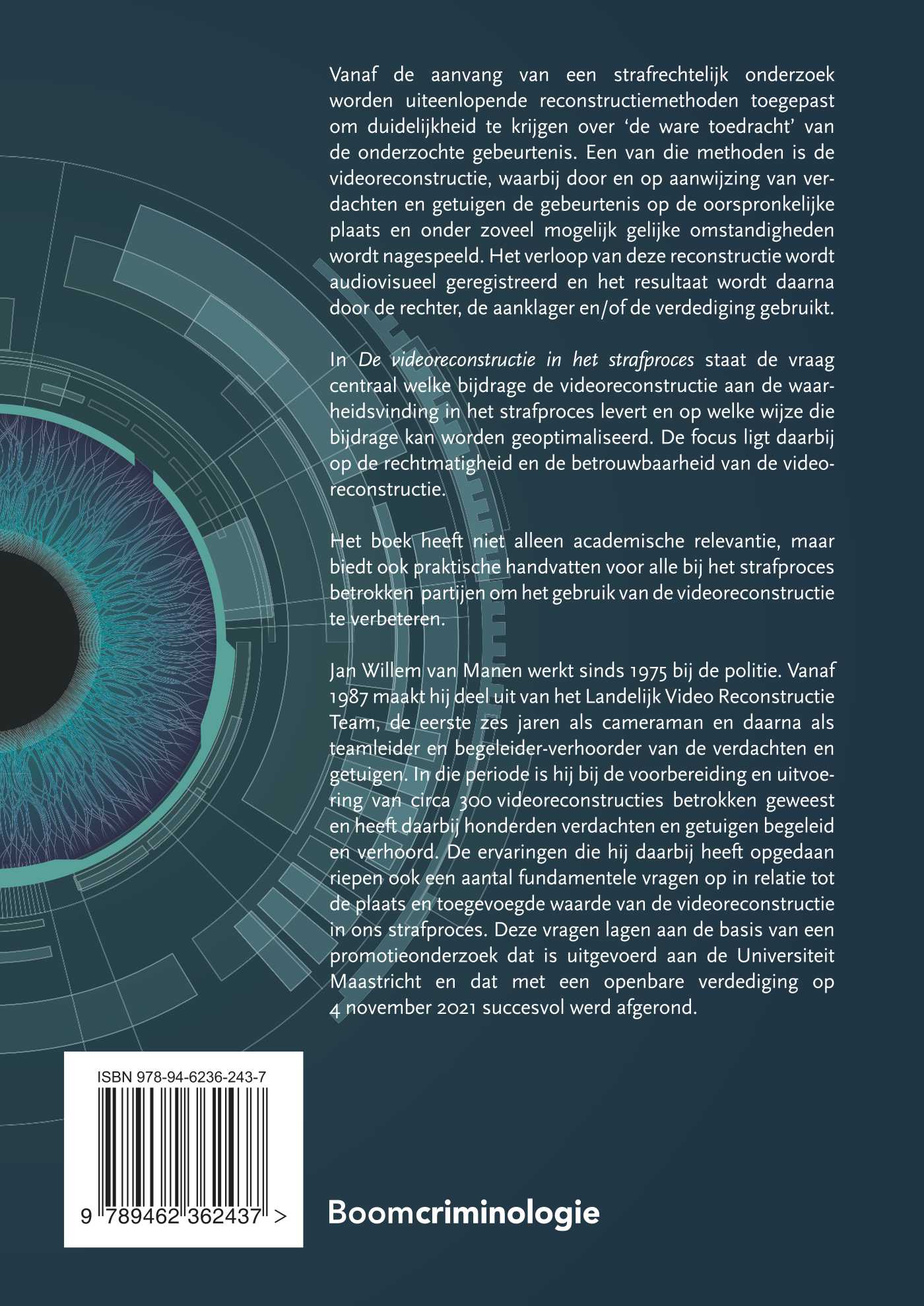 In De videoreconstructie in het strafproces staat de vraag centraal welke bijdrage de videoreconstructie aan de waarheidsvinding in het strafproces levert en op welke wijze die bijdrage kan worden geoptimaliseerd. De focus ligt daarbij op de rechtmatigheid en de betrouwbaarheid van de videoreconstructie.
