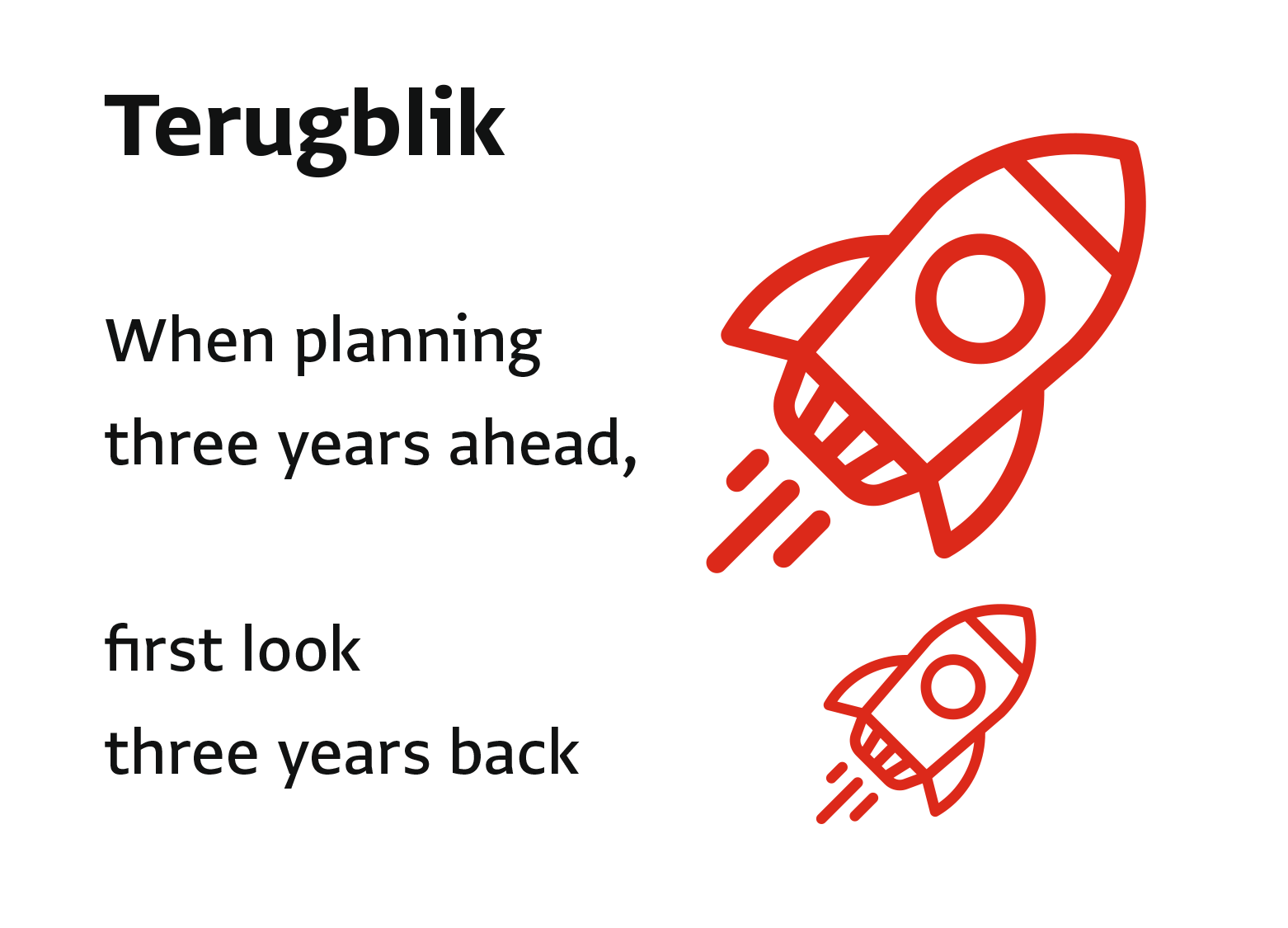 Ken je die ook? Die mooie plannen waarin alles anders wordt. Die overlopen van ambitie. Gloedvolle toekomstvisies. Maar om het realiteitsgehalte van de plannen voor de komende jaren te bewaken, is het een heel handige gedachtenoefening om ook even terug te kijken. Wat heb je bereikt in dezelfde tijdsperiode? Zonder ingrijpende maatregelen (meer geld, meer mensen, meer kwaliteit) is dit wat je in de komende periode kan bereiken. Als je dit voor je organisatie doet, valt het dan mee of tegen? Moet je nog iets gaan bijstellen in je plan?