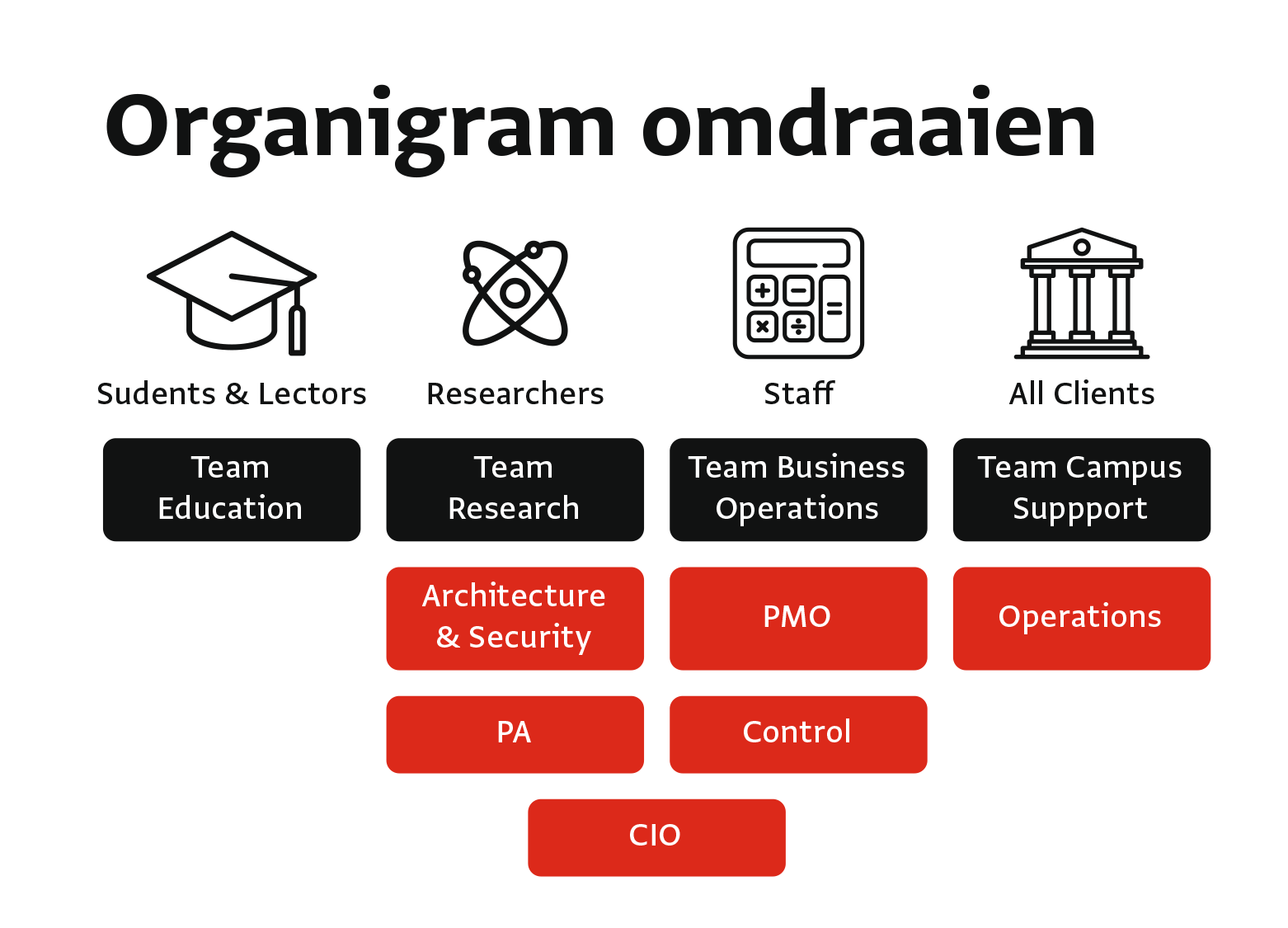 Teken jullie organigram de volgende keer eens anders. Zet de klant bovenaan en daaronder de medewerkers op de werkvloer. Zij doen het werk. Zij zijn dagelijks in contact met de klant. En die stafafdelingen, managers en directeuren? Gepositioneerd op de plaats waar ze horen: faciliterend aan de mensen die het ‘echte werk’ doen. Of beeldend: dragend. Het is verfrissend en één ding is zeker: de klant krijgt een plaats in het organigram!