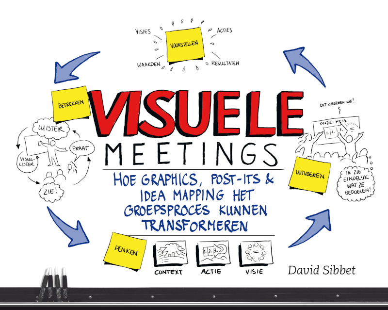 Visuele meetings is een complete how to-gids voor het gebruik van de nieuwste technieken voor visueel denken met groepen en teams en biedt een schat aan tools en trucs om creativiteit, samenwerking en baanbrekend denken los te maken. Stap voor stap laat Sibbet zien hoe je zelfs met eenvoudige visuele tools (post-its, tekeningetjes, foto’s, mindmaps, roadmaps, storyboards, visuele metaforen, grafieken) teams vanaf het begin bij een onderwerp betrekt.