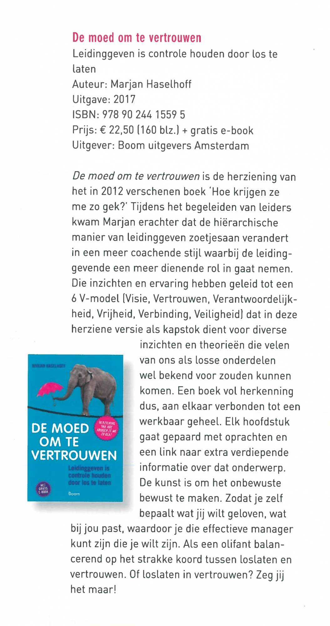 Het boek De moed om te vertrouwen is volgens Vrouwen Visie passend bij het thema 'zorgen voor jezelf met een stappenmodel'. Bekijk hieronder de recensie uit het januarinummer (thema: ondernemen met zorg):