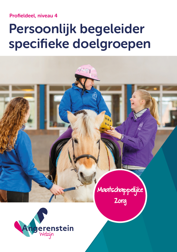Persoonlijk begeleider specifieke doelgroepen is het profielboek voor niveau 4 van de methode Angerenstein Welzijn. Dit bronnenboek bevat informatie over de onderwerpen: begeleidingsplan, dagbesteding, werk, informatie verzamelen met de cliënt, cliënten in de wijk, armoede, schulden, asielmigranten, gezinssystemen, jongeren, psychische beperkingen, seksuele dysfuncties, genderdysforie, eet- en slaapstoornissen, begeleiden in passend onderwijs, begeleiden van ouderen, ouderen met niet- Nederlandse achtergrond, verslaafd of dakloos, multiproblematiek,