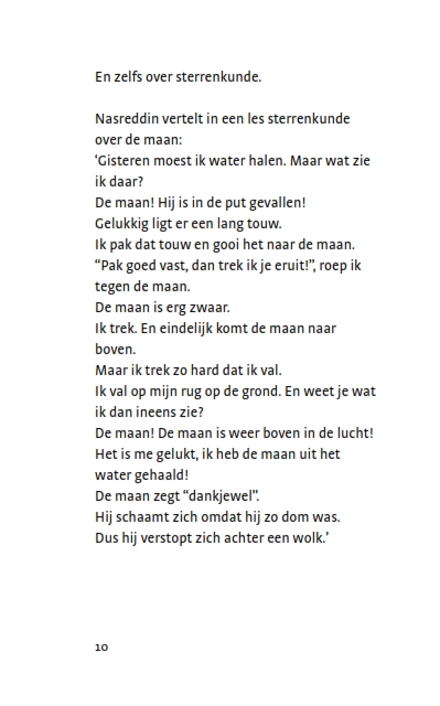 De verhalen van Nasreddin Hodja zijn in alle landen in het Midden-Oosten bekend. Met deze grappige verhalen in eenvoudige taal kunnen migranten hun eigen verteltraditie terugvinden in de taal van hun nieuwe land. Het boek staat vol met prachtige tekeningen.