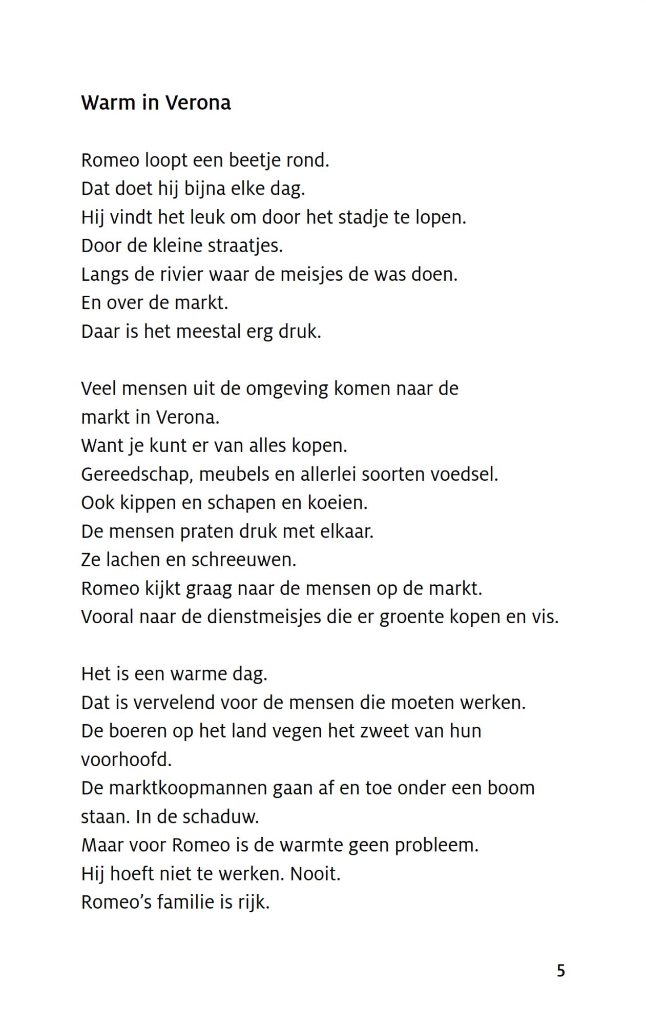 Romeo en Julia is het bekendste liefdesverhaal ter wereld. Het verhaal speelt zich af in Italië in de 16e eeuw. Wanneer Romeo en Julia elkaar voor het eerst zien, worden ze meteen verliefd. Alleen hebben hun families al jaren ruzie waardoor de liefde tussen Romeo en Julia niet mag bestaan. Maar de geheime geliefden kunnen niet zonder elkaar.