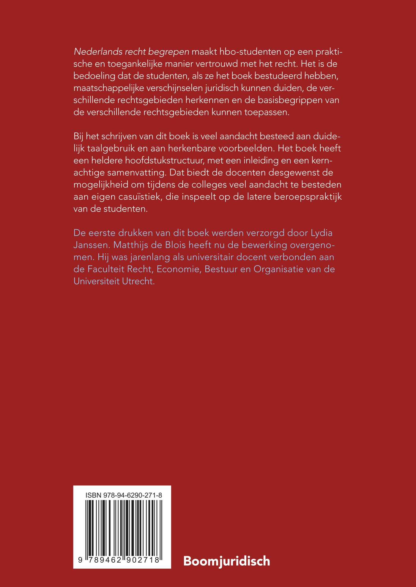 Nederlands recht begrepen maakt hbo-studenten op een praktische en toegankelijke manier vertrouwd met het recht. Het is de bedoeling dat de studenten, als ze het boek bestudeerd hebben, maatschappelijke verschijnselen juridisch kunnen duiden, de verschillende rechtsgebieden herkennen en de basisbegrippen van de verschillende rechtsgebieden kunnen toepassen.
