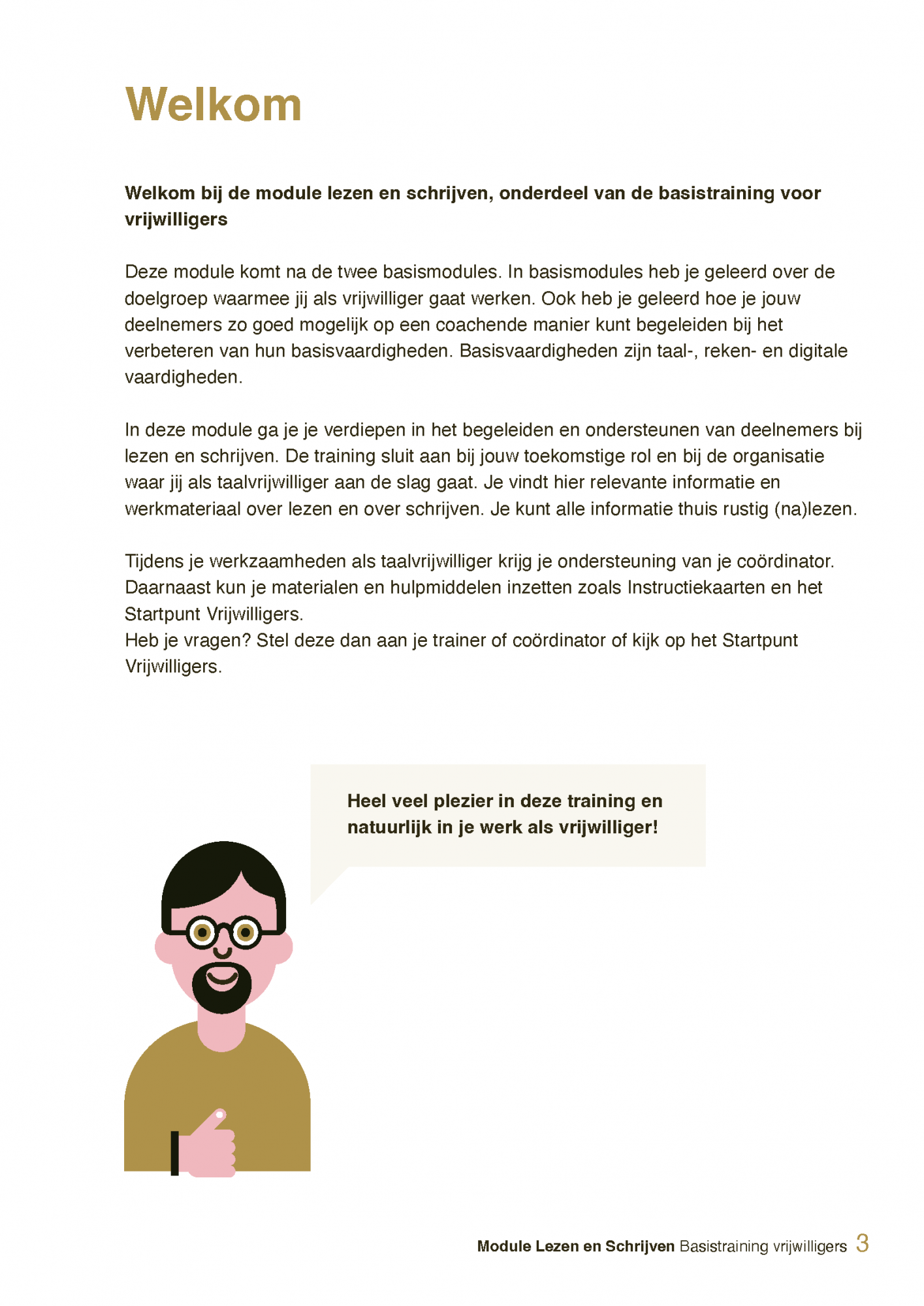 De Module Lezen en schrijven is een aanvulling op de Basistraining vrijwilligers.