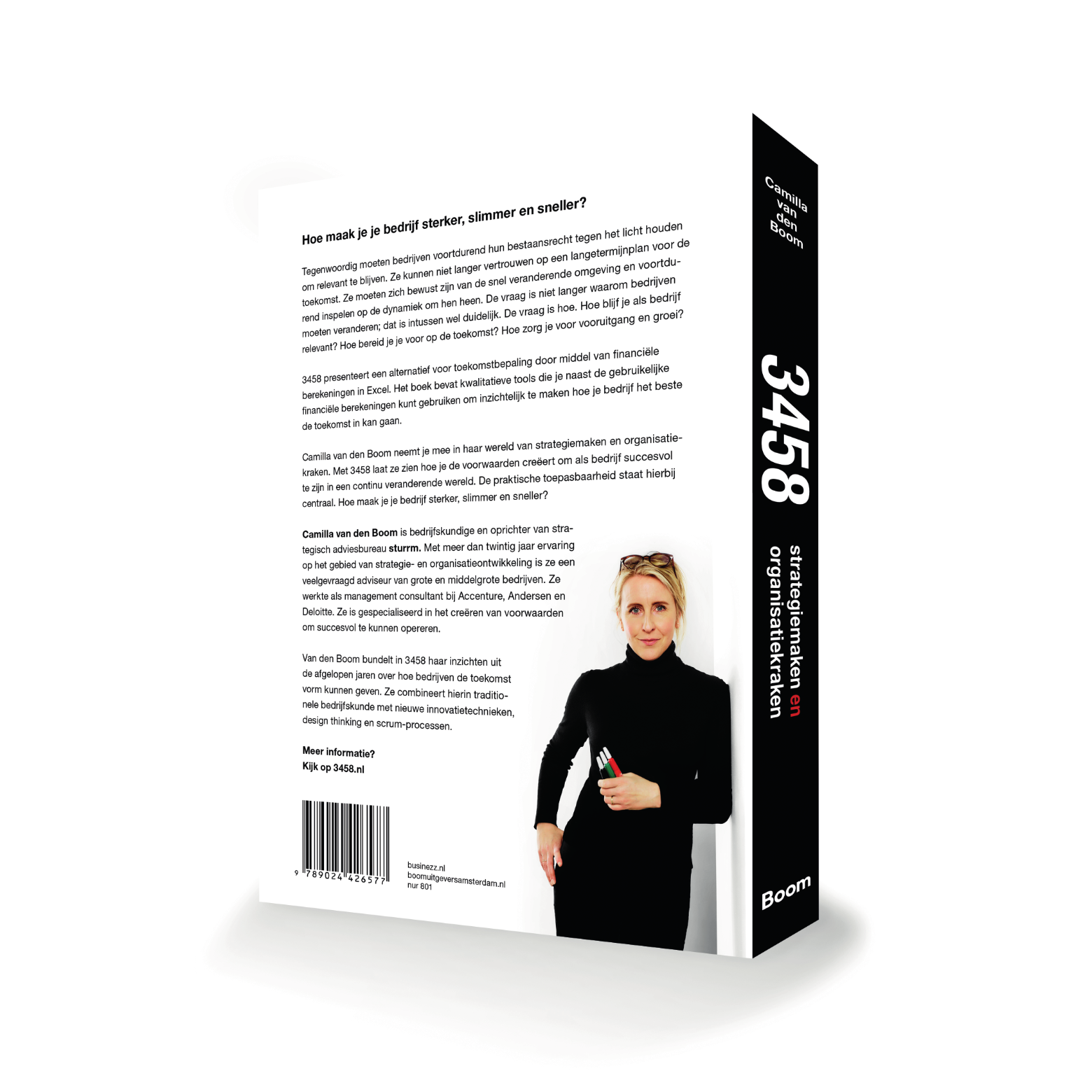 Camilla van den Boom neemt je mee in haar wereld van strategiemaken en organisatiekraken. Met 3458 laat ze zien hoe je de voorwaarden creëert om als bedrijf succesvol te zijn in een continu veranderende wereld. De praktische toepasbaarheid staat hierbij centraal. Hoe maak je je bedrijf sterker, slimmer en sneller?
