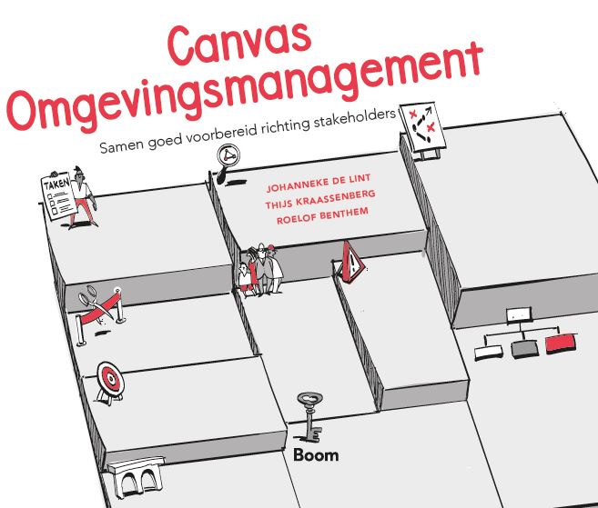 Canvas Omgevingsmanagement biedt teams en organisaties een praktisch hulpmiddel om het omgevingsmanagement bij de start van een opgave samen in te richten. Met het canvas ben je beter voorbereid op de nieuwe Omgevingswet: het zorgt ervoor dat je gestructureerd met elkaar het gesprek aangaat over de wijze waarop je in jouw project met stakeholders om wilt gaan. Welke verantwoordelijkheden je hiermee aangaat en wat dat betekent voor het verder inrichten van het omgevingsproces.