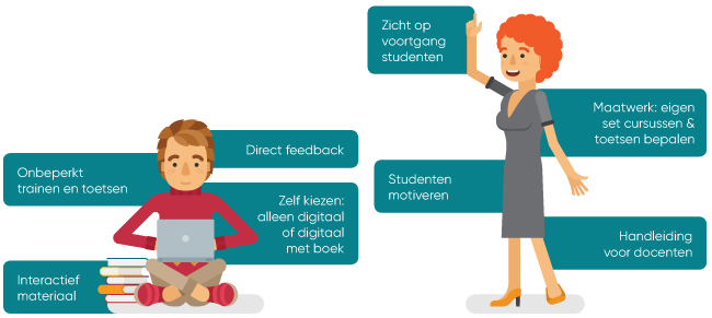 Bij de licentie is een PDF beschikbaar met de theorie en voorbeelden als naslagwerk. Hierin staan ook verwijzigingen naar de digitale componenten voor een optimale afstemming op de online simulaties, trainingen en toetsen.