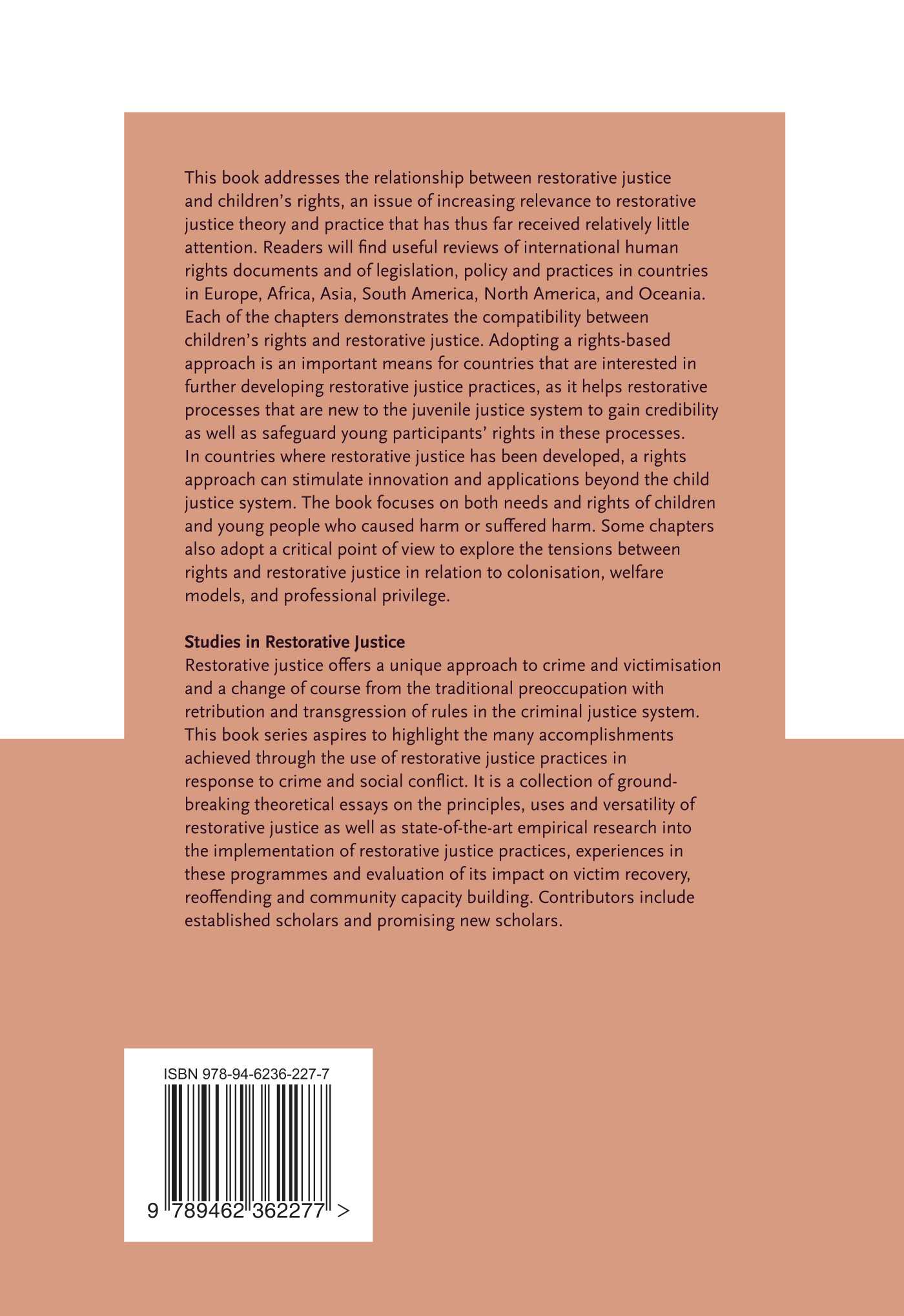 This book addresses the relationship between restorative justice and children’s rights, an issue of increasing relevance to restorative justice theory and practice that has thus far received relatively little attention. Readers will find useful reviews of international human rights documents and of legislation, policy and practices in countries in Europe, Africa, Asia, South America, North America, and Oceania. Each of the chapters demonstrates the compatibility between children’s rights and restorative justice. Adopting a rights-based approach is an important means for countries that are interested in further developing restorative justice practices, as it helps restorative processes that are new to the juvenile justice system to gain credibility as well as safeguard young participants’ rights in these processes. In countries where restorative justice has been developed, a rights approach can stimulate innovation and applications beyond the child justice system. The book focuses on both needs and rights of children and young people who caused harm or suffered harm. Some chapters also adopt a critical point of view to explore the tensions between rights and restorative justice in relation to colonisation, welfare models, and professional privilege.