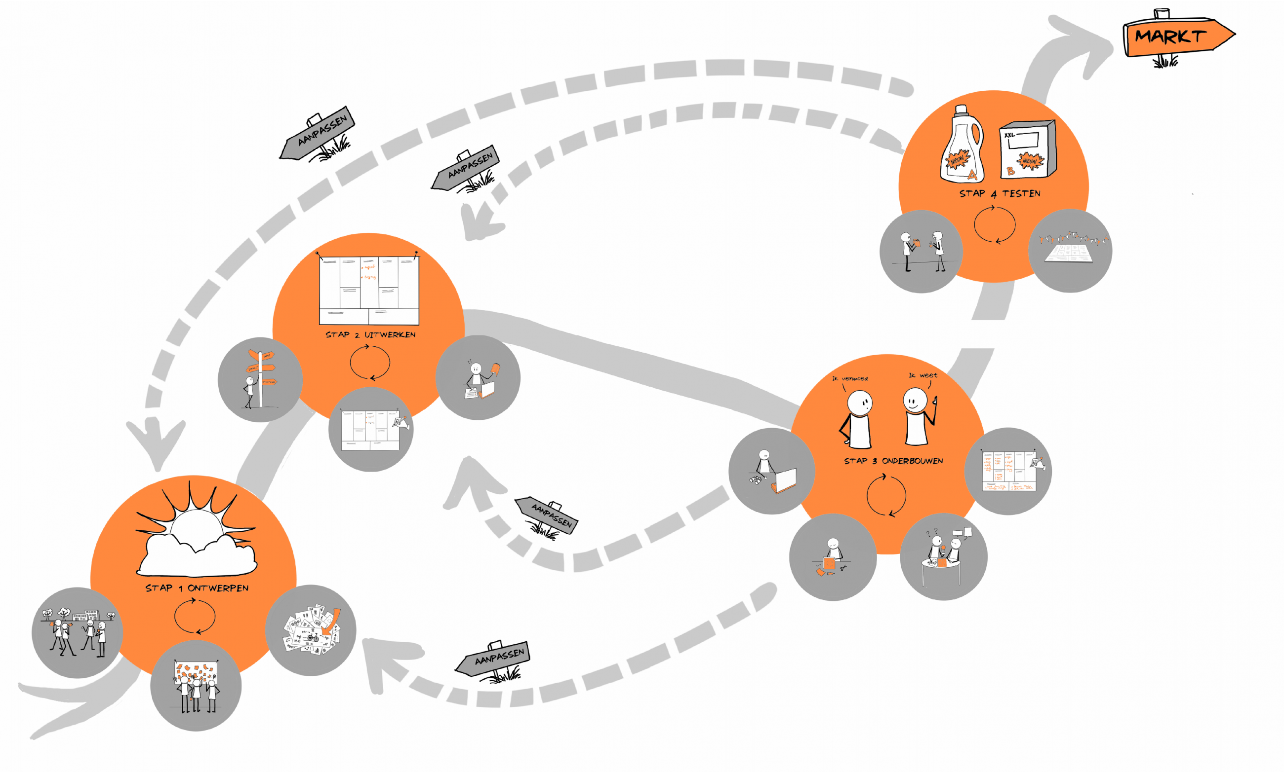 Je leert onderzoeken waar de klant tegenaan loopt, aansluiten bij wat hij wil, je idee te onderbouwen en te testen in de markt. Concrete (duurzame) voorbeelden, tools & templates en tips & tricks helpen bij de uitwerking van elke stap. Het stappenplan is gebaseerd op toonaangevende literatuur over onder andere Lean Startup, Design Thinking, Business Model Generatie en Customer Development.