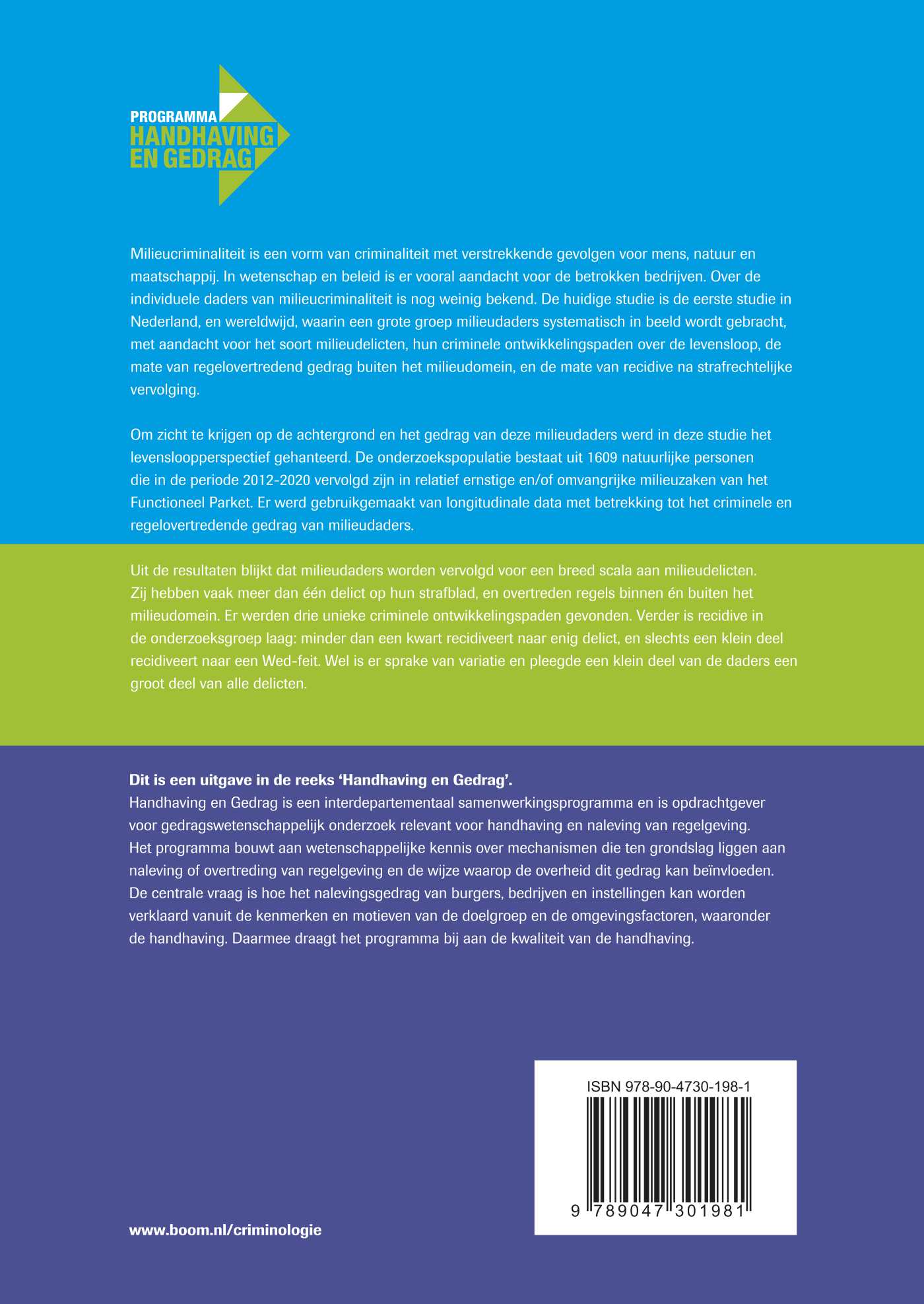 Milieucriminaliteit is een vorm van criminaliteit met verstrekkende gevolgen voor mens, natuur en maatschappij. In wetenschap en beleid is er vooral aandacht voor de betrokken bedrijven. Over de individuele daders van milieucriminaliteit is nog weinig bekend. De huidige studie is de eerste studie in Nederland, en wereldwijd, waarin een grote groep milieudaders systematisch in beeld wordt gebracht, met aandacht voor het soort milieudelicten, hun criminele ontwikkelingspaden over de levensloop, de mate van regelovertredend gedrag buiten het milieudomein, en de mate van recidive na strafrechtelijke vervolging.
