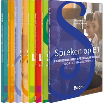 Studeren jouw cursisten voor het Staatsexamen NT2 programma I of II, en willen ze controleren of ze het niveau al hebben? Of hebben ze een examenonderdeel niet gehaald en willen ze deze vaardigheid extra trainen? Ga dan aan de slag met een van deze examentrainers. De boeken bereiden de kandidaat voor op het soort vragen dat er gesteld gaat worden, geven uitleg over beoordelingscriteria en leren de cursist handige strategieën om vol vertrouwen het examen tegemoet te zien.