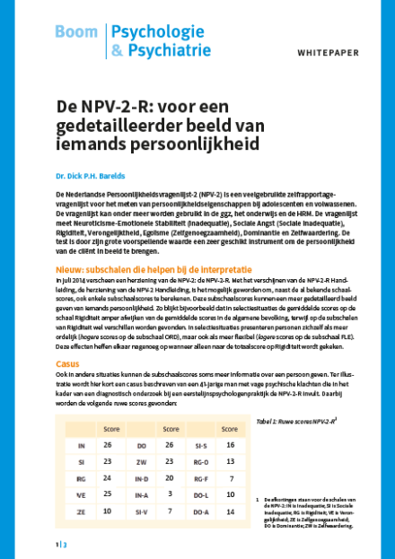 De handleiding van de NPV-2-R beschrijft nieuwe onderzoeken die de psychometrische kwaliteit van de vragenlijst onderbouwen. Daarnaast bevat de handleiding de nieuwe normtabellen, met voor het eerst ook subschalen bij vier van de zeven NPV-2-schalen.
