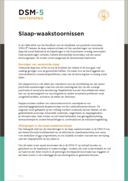 In de DSM-5 is de classificatie slaap-waakstoornissen op een aantal belangrijke punten gewijzigd. Daarmee zijn de definities en classificatiecriteria beter bruikbaar in de klinische praktijk en is het duidelijker wanneer een verwijzing naar een slaapspecialist nodig is.
