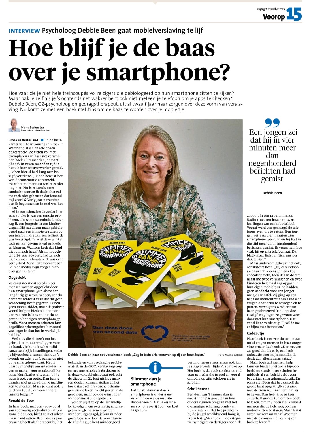 — Citaat van Debbie Been in het artikel 'Hoe blijf je de baas over je smartphone?' uit Noordhollands Dagblad (november 2025)