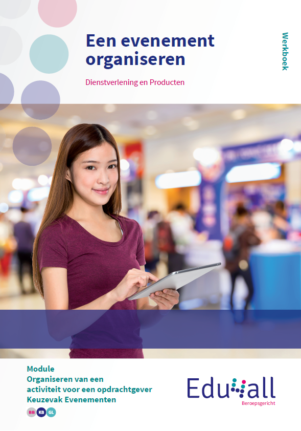 De leerling leert in dit werkboek voor een opdrachtgever een evenement voor te bereiden, op te bouwen en uit te voeren. Ze ronden daarna een evenement af. De leerling krijgt te maken met veel verschillende onderwerpen. Denk aan een plan van aanpak, routing, vergunningen, hulpverleners en afval. In ieder deel van dit werkboek staat een ander evenement centraal. De leerling is met dit boek veel bezig met 21e-eeuw vaardigheden.