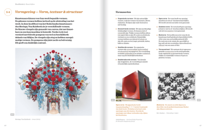 In het kunstbeschouwingsdeel van het tekstboek komen alle begrippen uit de begrippenlijst aan de orde, denk aan termen die te maken hebben met voorstelling, zeggingskracht en vormgeving. De begrippen worden toegelicht aan de hand van zeer diverse en aansprekende werken. In het kunstgeschiedenisdeel wordt een zeer compact en overzichtelijk overzicht van de kunstgeschiedenis gegeven, uiteraard ook met een selectie van canonieke werken. Meteen wordt er ook een verband gelegd met hedendaagse kunst. Het opdrachtenboek bevat inspirerende opdrachten, waarbij vaak wordt verwezen naar videofragmenten die laten zien hoe een werk is gemaakt of vanuit welke culturele context je het werk kunt bekijken. De opdrachten zijn RTTI-gecodeerd en zorgen zowel voor het rechttoe-rechtaan toepassing van begrippen als voor oefening op examenniveau. Ook wordt in het opdrachtenboek aandacht besteed aan examenstrategie voor het CSE en CPE.