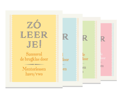 Voor mentorlessen bieden we de lesmethode Zó leer je! Een lesmethode gericht op studievaardigheden en sociaal-emotionele vaardigheden. Er is veel aandacht voor executieve functies. Zó leer je! is beschikbaar voor vmbo, havo en vwo onderbouw. Daarnaast bieden we een boek voor ouders (en hun kinderen in de brugklas) dat perfect aansluit bij Zó leer je!, maar ook zelfstandig gelezen en gebruikt kan worden: Thuis op school.