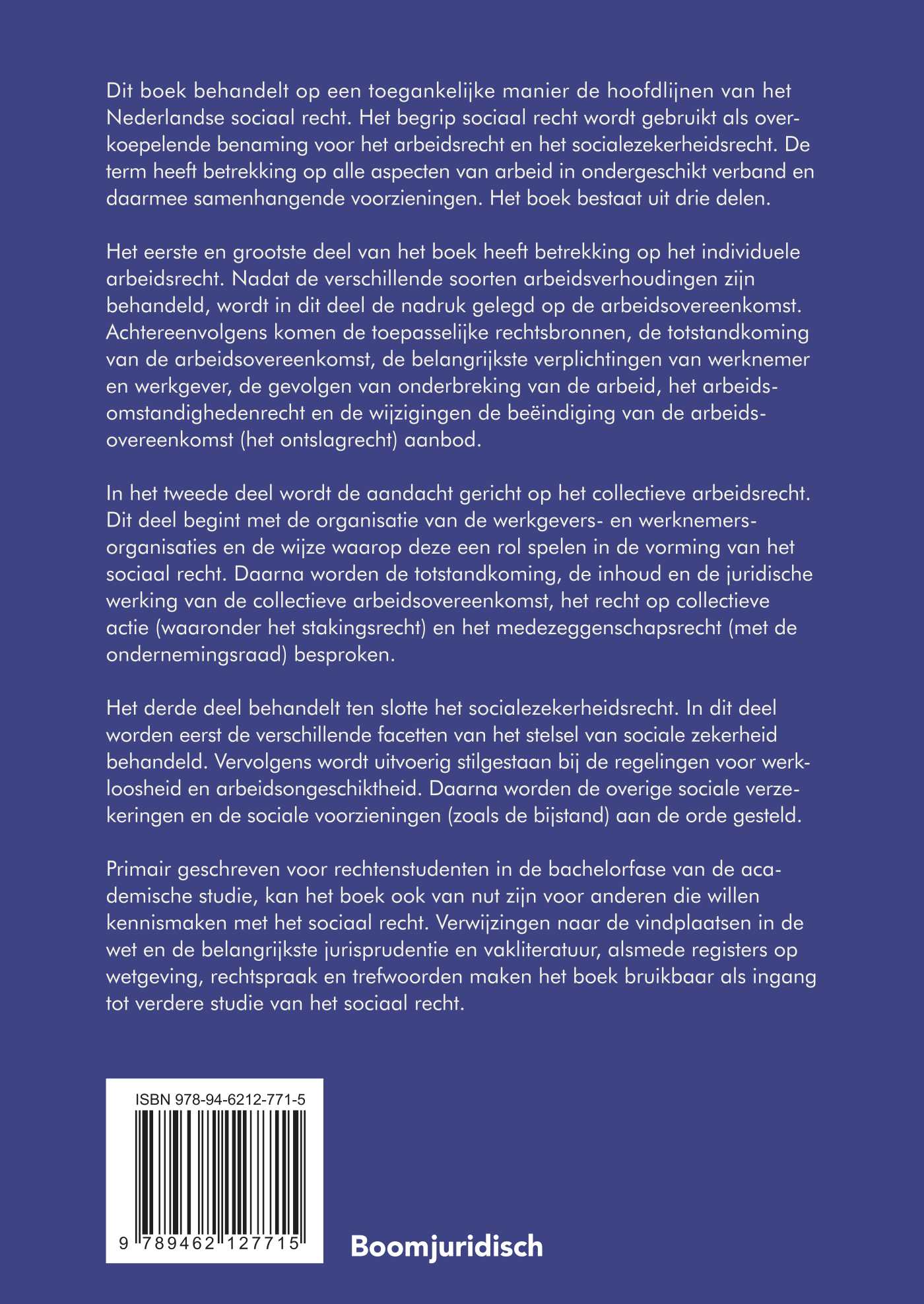 Dit boek behandelt op een toegankelijke manier de hoofdlijnen van het Nederlandse sociaal recht. Het begrip sociaal recht wordt gebruikt als overkoepelende benaming voor het arbeidsrecht en het socialezekerheidsrecht. De term heeft betrekking op alle aspecten van arbeid in ondergeschikt verband en daarmee samenhangende voorzieningen. Het boek bestaat uit drie delen.