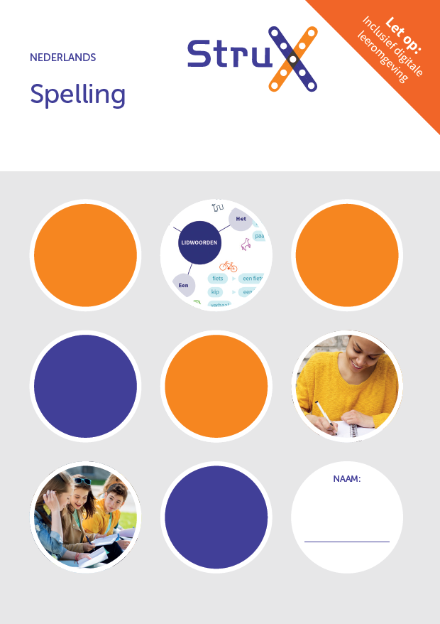 Het leer-werkboek Spelling bestaat uit een aantal korte hoofdstukken. Elk hoofdstuk bevat korte duidelijke uitleg, vaak met infographics. Daarna volgt een serie opdrachten, eventueel nog een korte uitleg en weer opdrachten. De leerlijn Nederlands binnen StruX leidt op voor niveau 1F. Deze leerlijn bestaat uit leer-werkboeken voor Nederlands in de Praktijk, Woordenschat, Spelling en Taalverzorging.