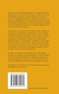 Dit boek biedt recente inzichten uit wetenschap en praktijk over representatie, inclusie, selectie, vraagstelling, gespreksbegeleiding, online kansen, evaluatie, en nieuwe vormen van participatie. Dit boek toont dat er nog veel verandering en vernieuwing mogelijk is om participatieve initiatieven als een burgerberaad in te bedden in het politieke proces én discours van overheden. Sterker nog, het is nodig en urgent om te veranderen en te vernieuwen. Dat vraagt om durf, aandacht, onderzoek, doorzettingsvermogen en vooral ook dóén. Het is tijd voor experiment.