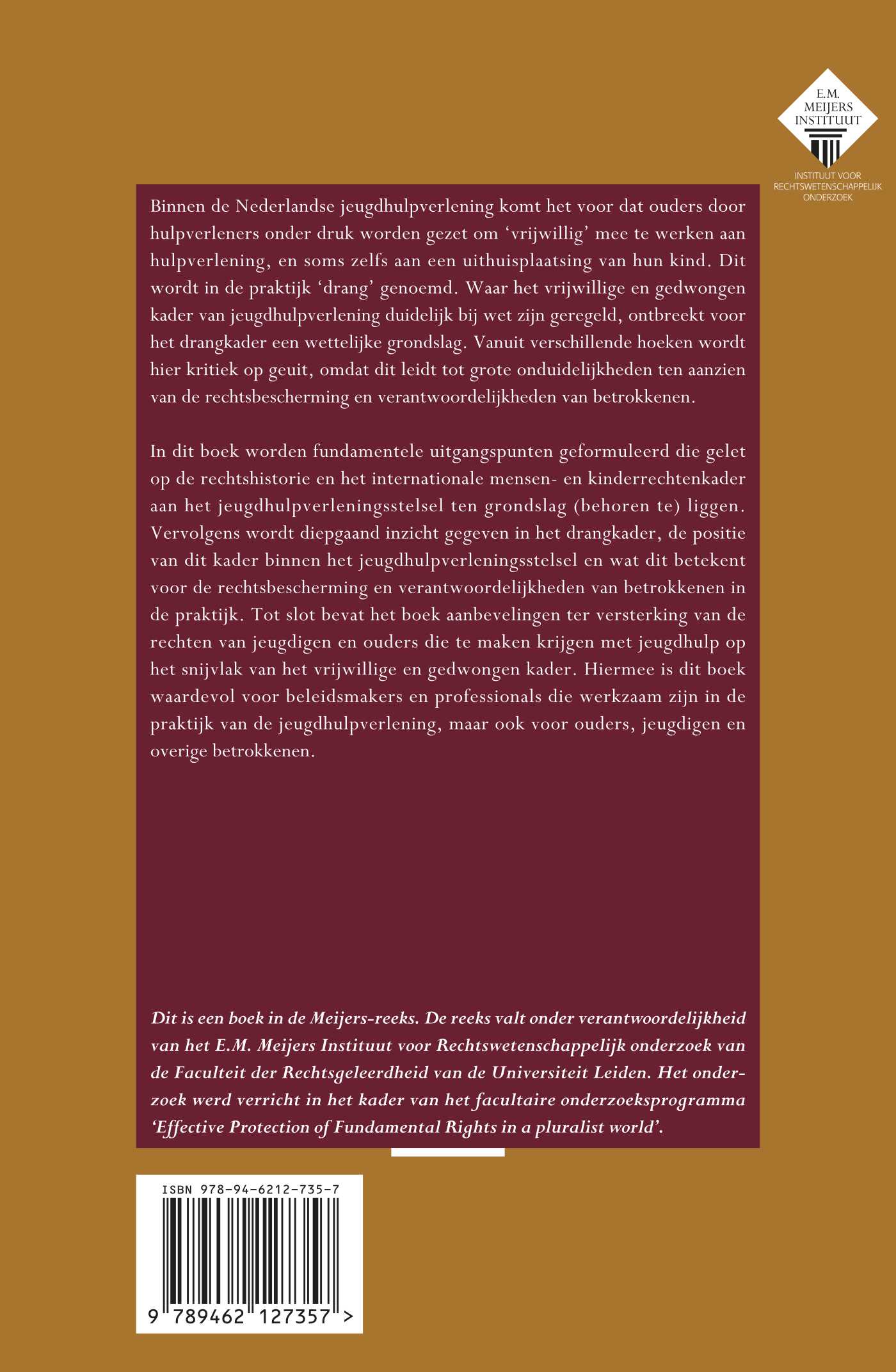 In dit boek worden fundamentele uitgangspunten geformuleerd die gelet op de rechtshistorie en het internationale mensen- en kinderrechtenkader aan het jeugdhulpverleningsstelsel ten grondslag (behoren te) liggen. Vervolgens wordt diepgaand inzicht gegeven in het drangkader, de positie van dit kader binnen het jeugdhulpverleningsstelsel en wat dit betekent voor de rechtsbescherming en verantwoordelijkheden van betrokkenen in de praktijk. Tot slot bevat het boek aanbevelingen ter versterking van de rechten van jeugdigen en ouders die te maken krijgen met jeugdhulp op het snijvlak van het vrijwillige en gedwongen kader. Hiermee is dit boek waardevol voor beleidsmakers en professionals die werkzaam zijn in de praktijk van de jeugdhulpverlening, maar ook voor ouders, jeugdigen en overige betrokkenen.